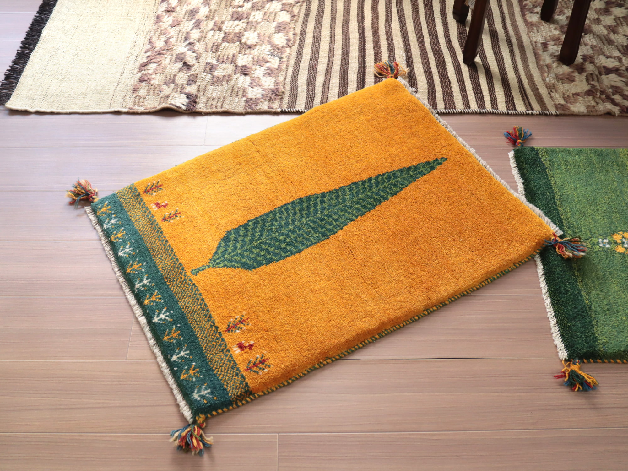 ギャッベ イラン産手織り 88×65cm イエロー オレンジ イトスギ
