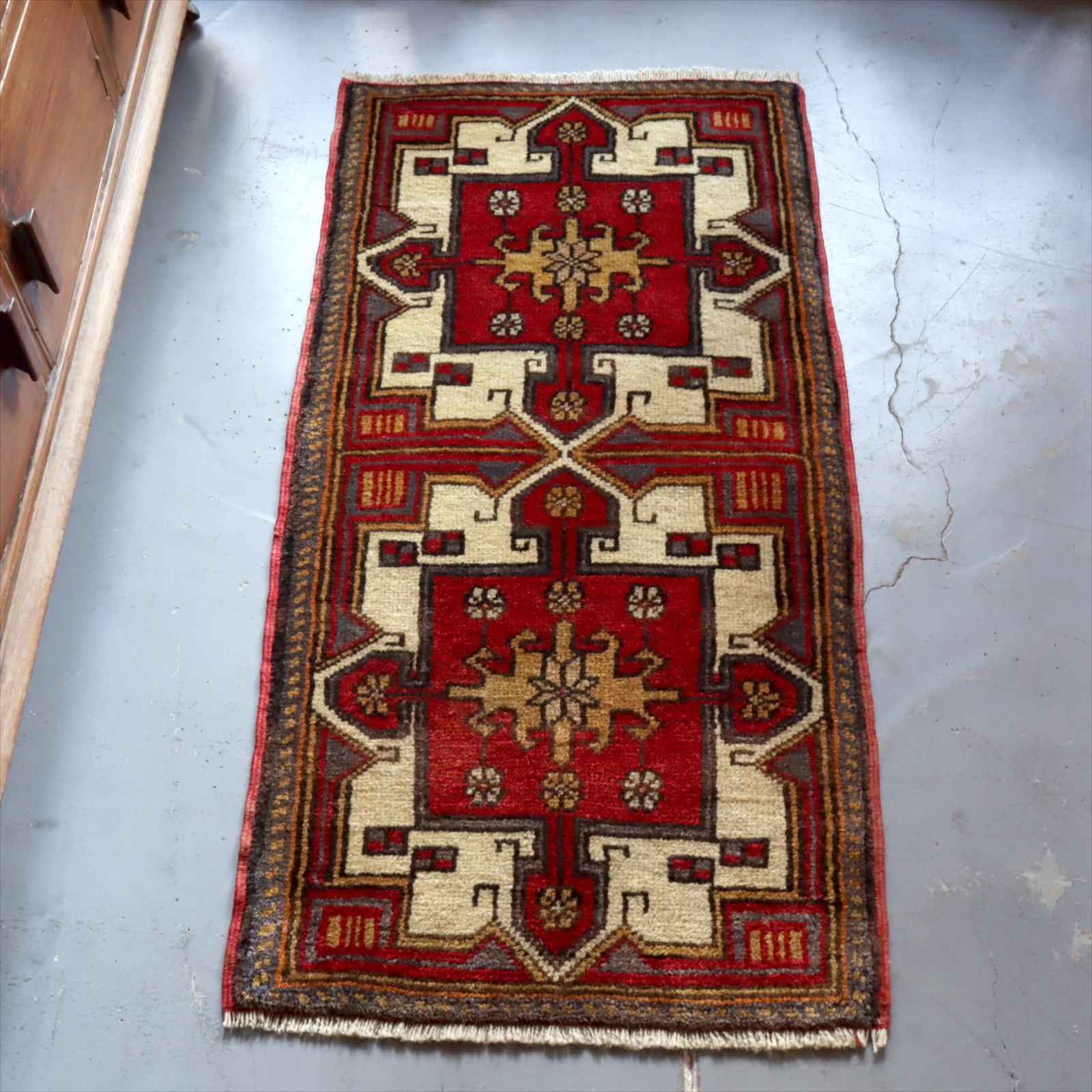 トルコ絨毯 ヤストゥク99×51cm ウシュクラル 二つのサンドゥック