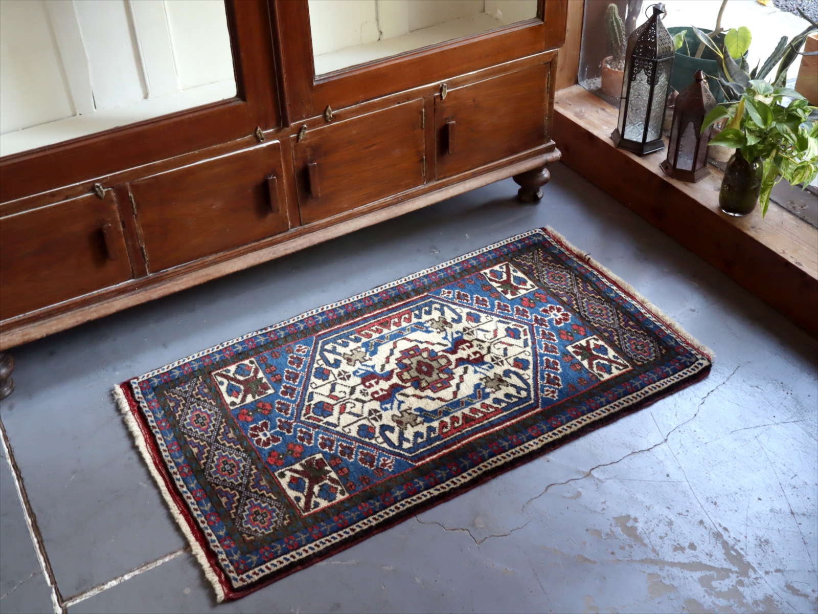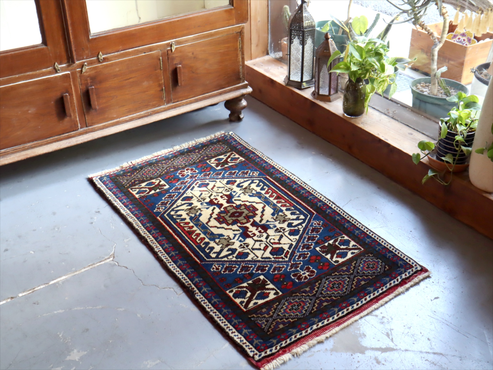 アナトリア地方で、ヤストゥク(枕の意味)と呼ばれる細長いクッションとして使うために織られた袋状のじゅうたん。現状では裏面はとってしまって、一枚のカーペットになっています。