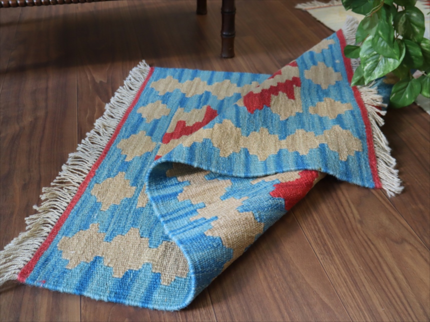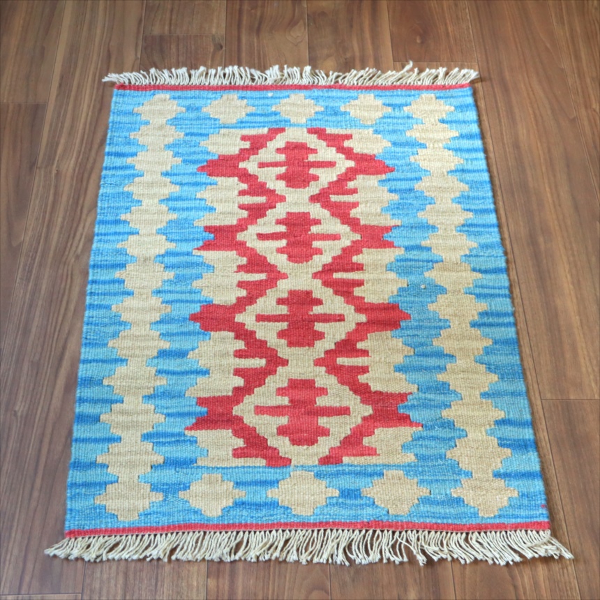 手織りキリム イラン シラーズ86×63cm カラフルな幾何学モチーフ