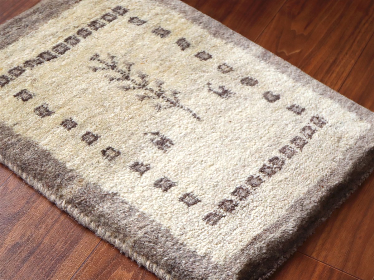 ギャッベ ミニギャベ イラン手織り 56×42cm ナチュラルアイボリー 生命の樹と動物