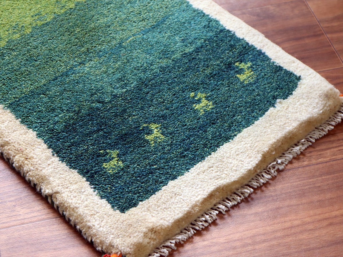 Key:Gabbeh, Tribal rug, Shiraz, Fars, Iran, Persia, Wool, ギャッベ, ギャベ, グリーン 緑 天然染料 草木染 ラグ, 絨毯, イラン, シラーズ, ペルシャ, バザールギャッベ, ポンポン, 手織り, 一点もの, 玄関マット, ふかふか, ガラタバザール