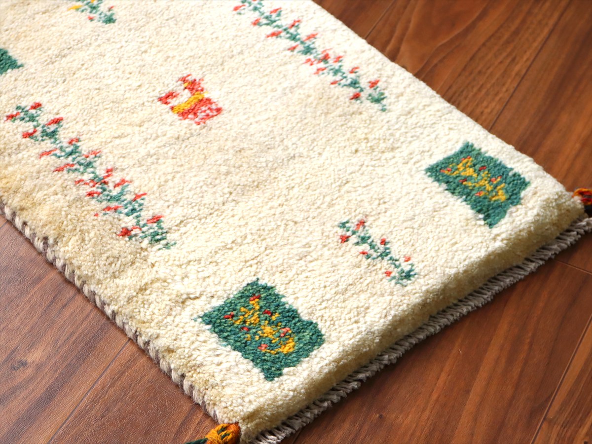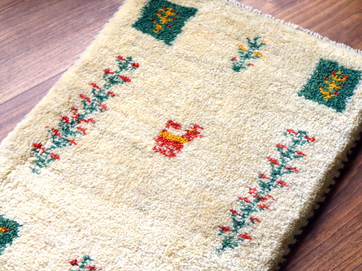 ギャッベ ミニギャベ イラン手織り 55×39cm ナチュラルアイボリー 連なる生命の樹と動物