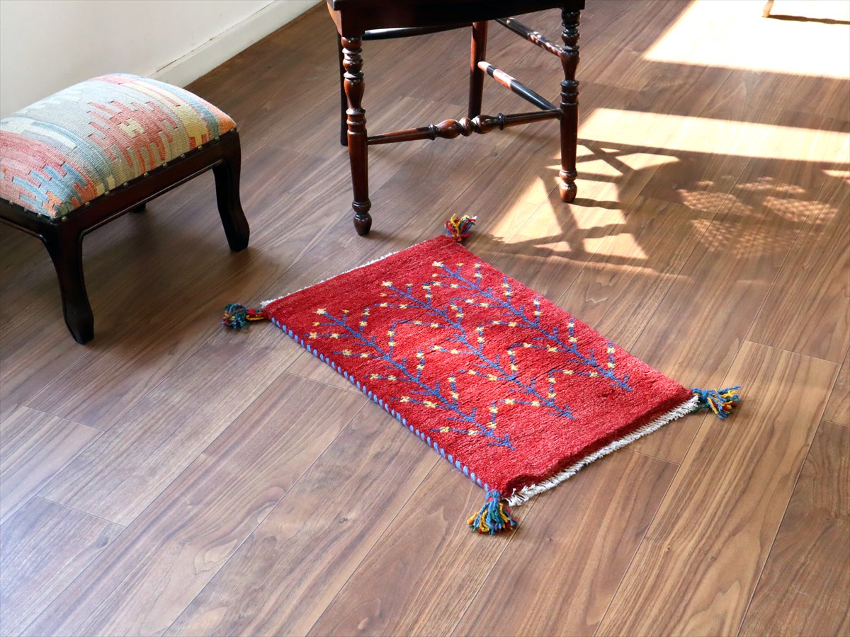 - ギャッベ ミニギャベ イラン手織り 60×38cm レッド 連なる生命の樹