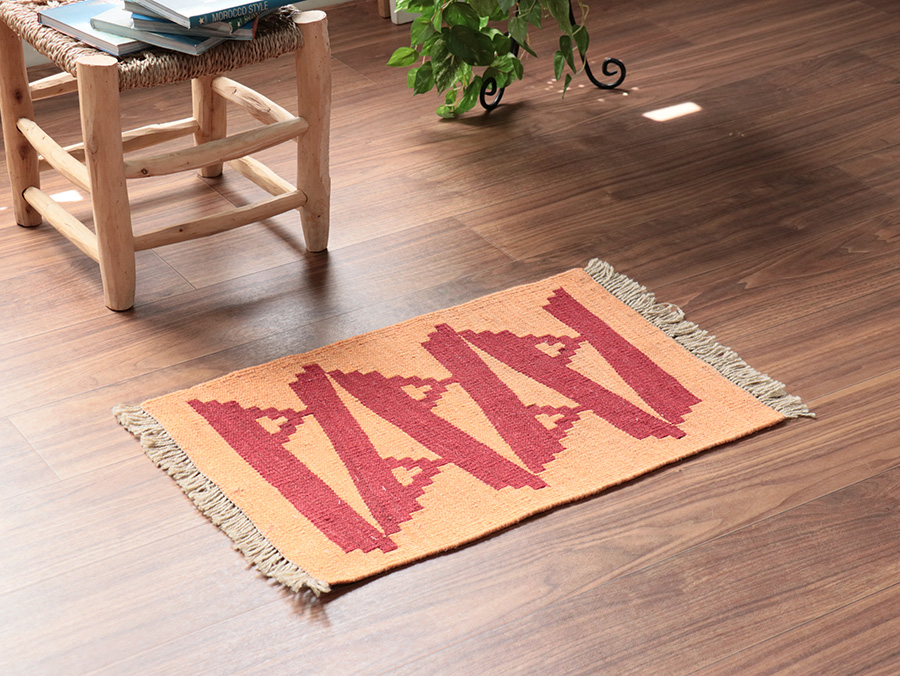 キリムはすべて手織りで作られています。織る女性の手の加減によって、サイズの多少の誤差やゆがみ等がありますことはご了承願います。
