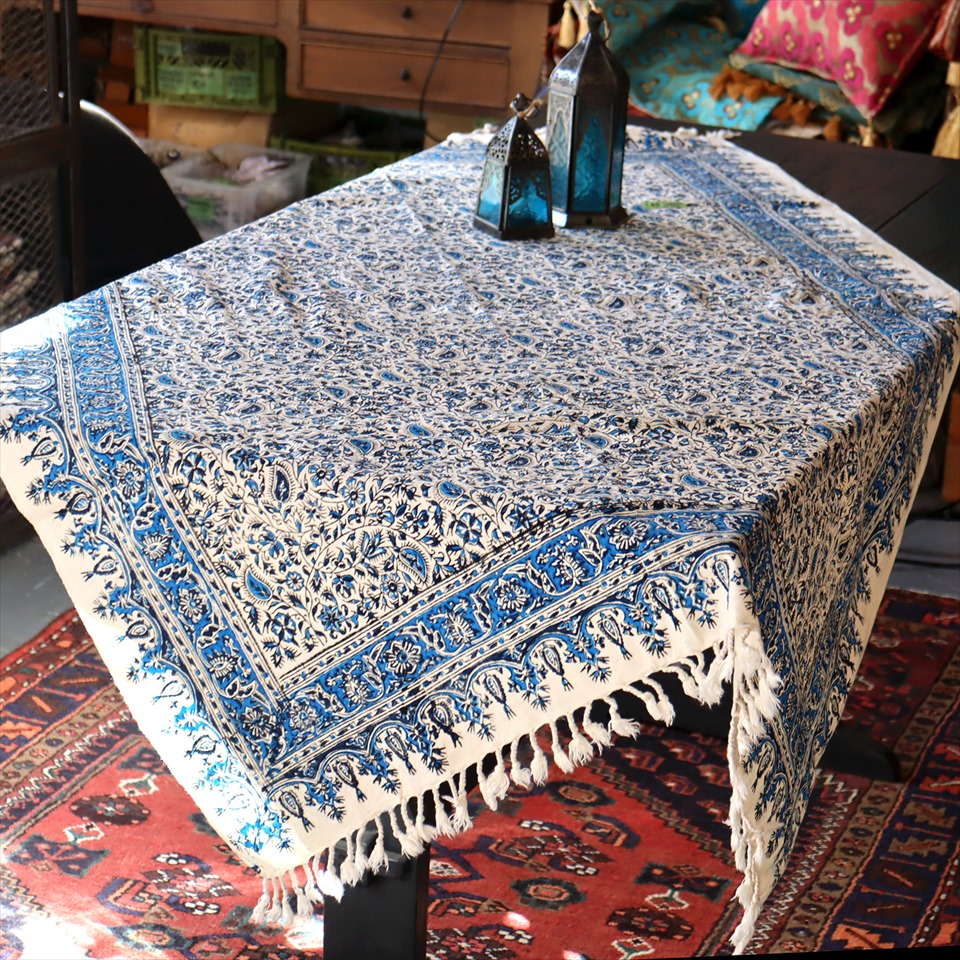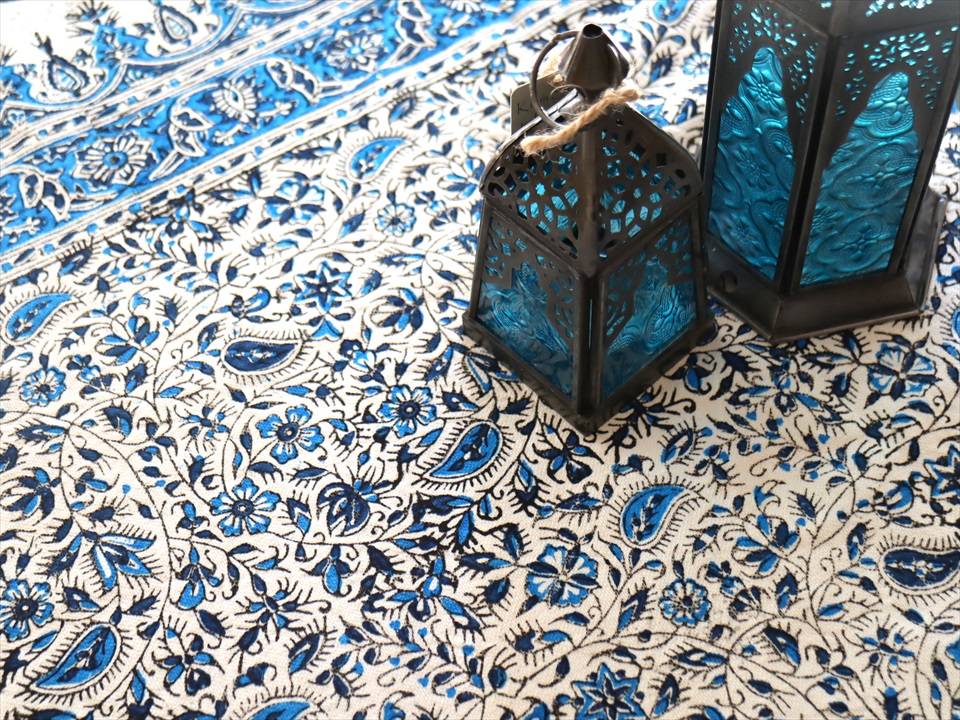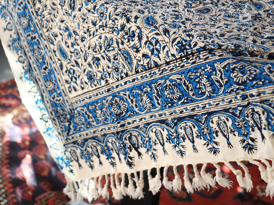 Key:コットン・染色・ブロックプリント・木版・捺染・伝統工芸・インド更紗・ジャワ更紗・ペルシャブルー・ペイズリー・フリークロス・マルチカバー・ベッドスプレッド・ベッドカバー・ソファカバー・カーテン・タペストリー・ファブリック・インテリアファブリック・クラフト・インテリア・ペルシャ・ペルセポリス・イラン・中東・シルクロード・アジアン・エスニック
