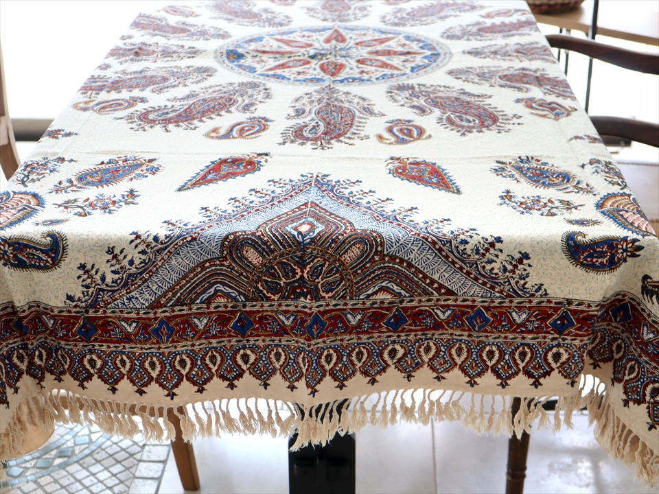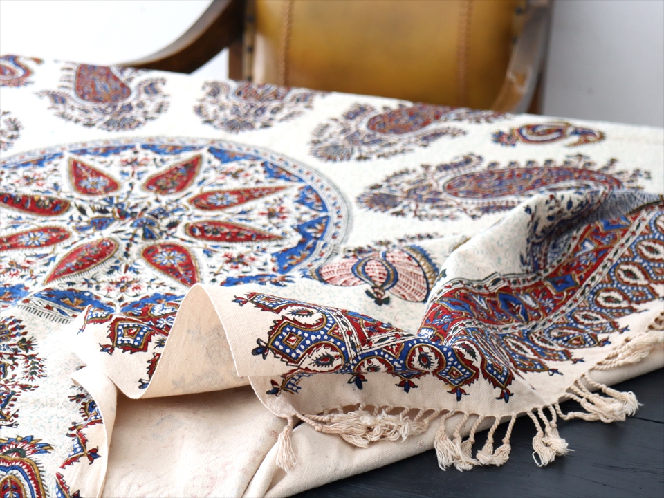 Key:ガラムカール・イラン・イスファハン・ペルシャ・シルクロード・コットン・綿100%・染色・ブロックプリント・木版・伝統工芸・テーブルクロス・ソファカバー・マルチカバー・タペストリー・背景・ペイズリー