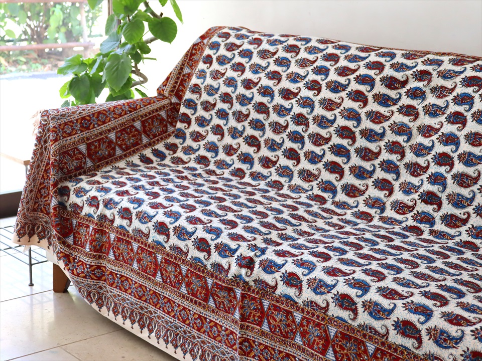 Key:ガラムカール・更紗・イラン・イスファハン・ペルシャ・シルクロード・コットン・綿100%・染色・ブロックプリント・木版・伝統工芸・テーブルクロス・ソファカバー・マルチカバー・タペストリー・背景・ペイズリー