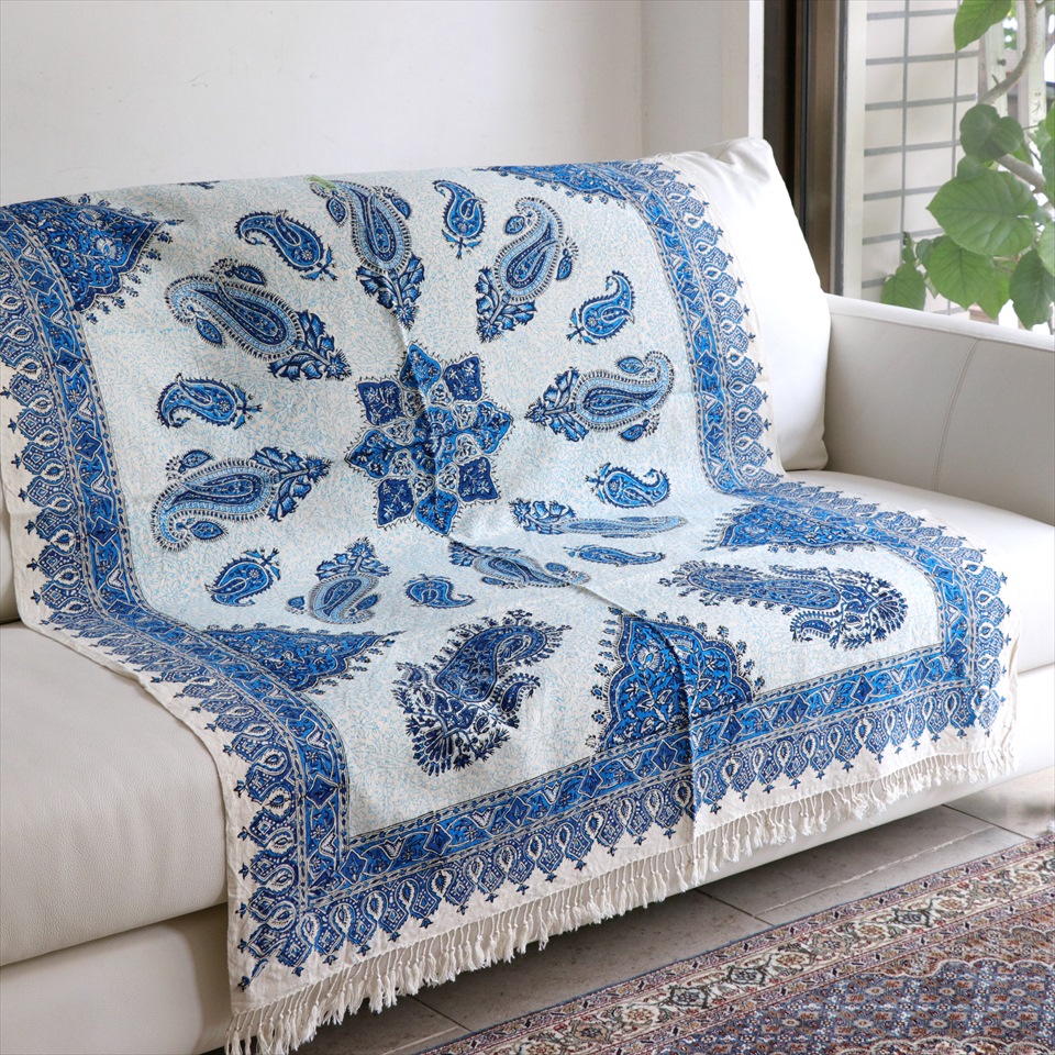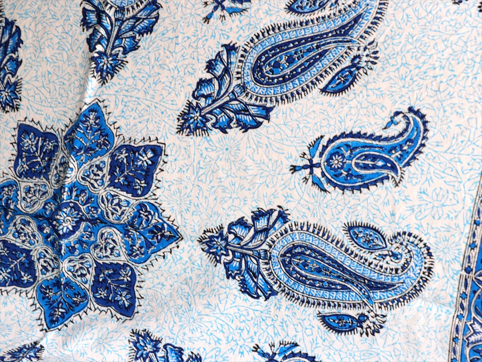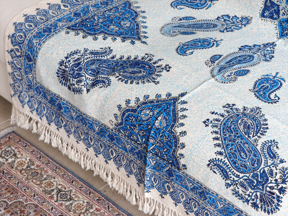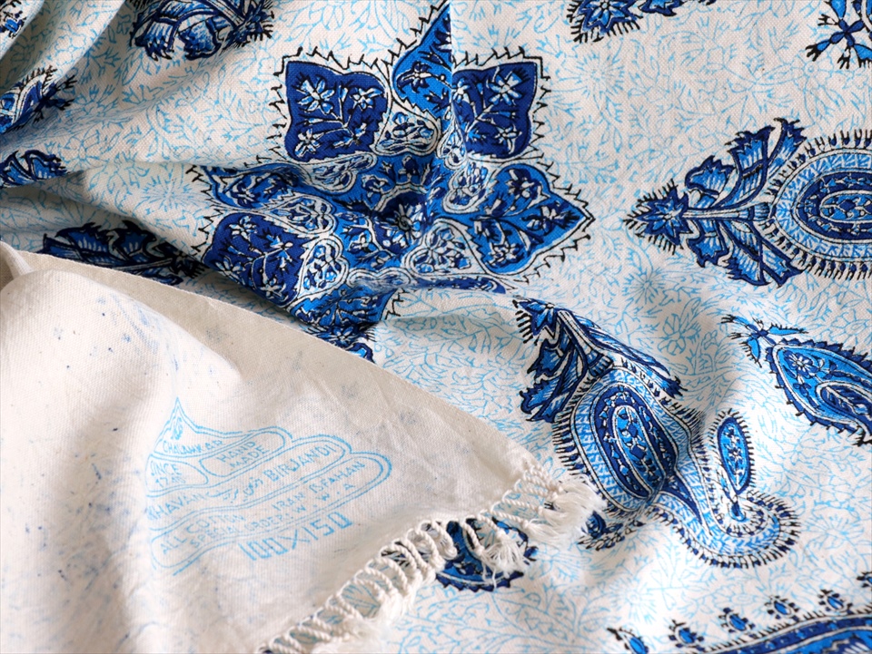Key:コットン・染色・ブロックプリント・木版・捺染・伝統工芸・インド更紗・ジャワ更紗・ペルシャブルー・ペイズリー・フリークロス・マルチカバー・ベッドスプレッド・ベッドカバー・ソファカバー・カーテン・タペストリー・ファブリック・インテリアファブリック・クラフト・インテリア・ペルシャ・ペルセポリス・イラン・中東・シルクロード・アジアン・エスニック