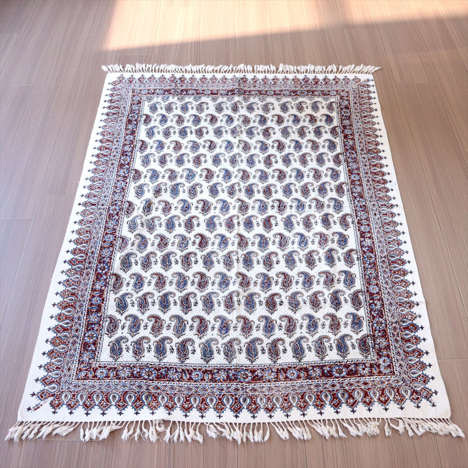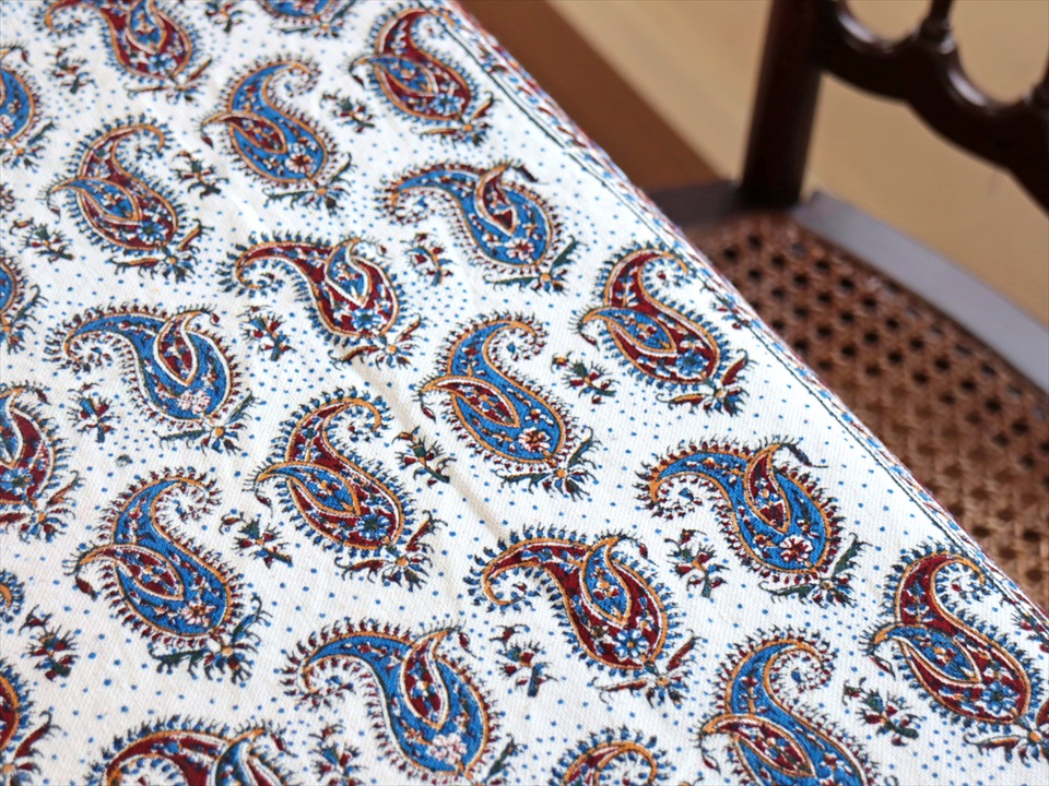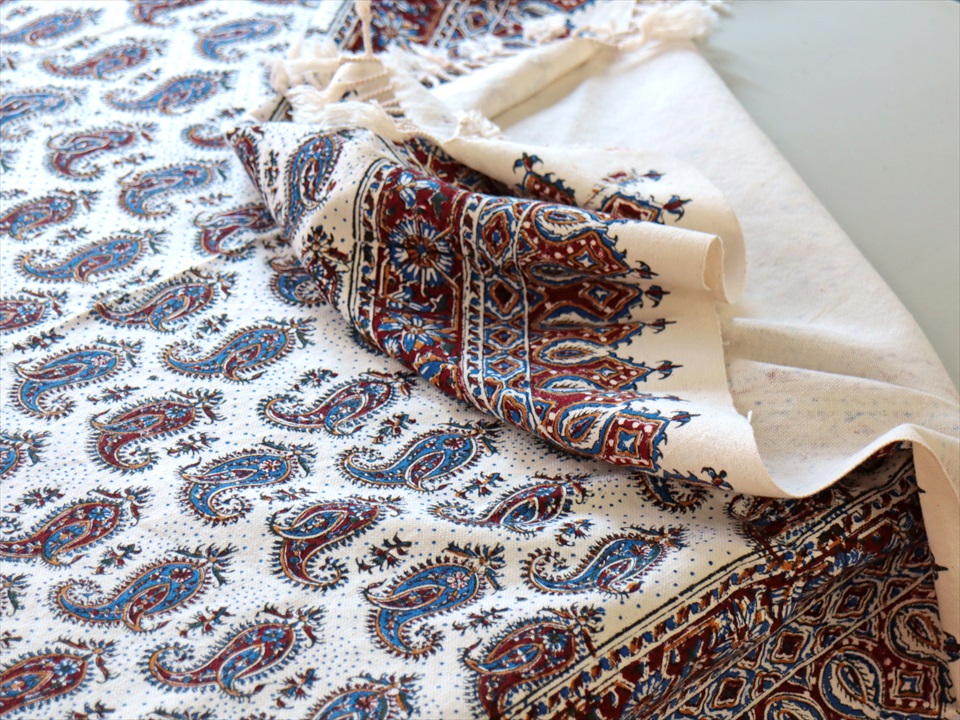 Key:コットン 染色 ブロックプリント 木版 捺染 伝統工芸 ペルシャブルー ペイズリー フリークロス マルチカバー ベッドスプレッド ベッドカバー ソファカバー カーテン タペストリー ファブリック インテリアファブリック クラフト インテリア ペルシャ ペルセポリス イラン 中東 シルクロード アジアン エスニック