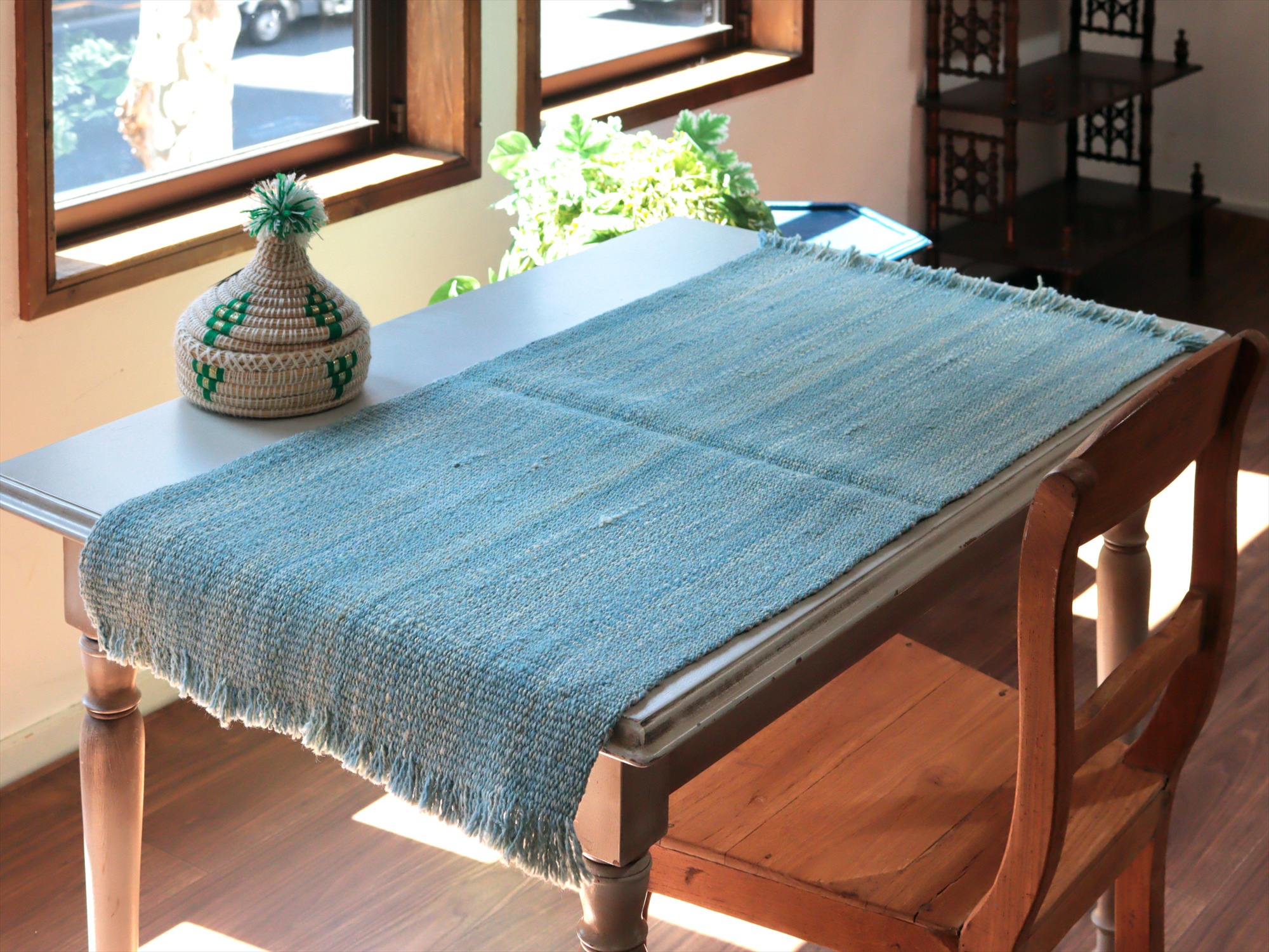 key:Turkish kilim, Natural color, monotone color, wool rug, Hand weaven, Handmade, キリム, キリムラグ, トルコキリム, 天然素材, ウール, ブルー, シンプル, mapKars