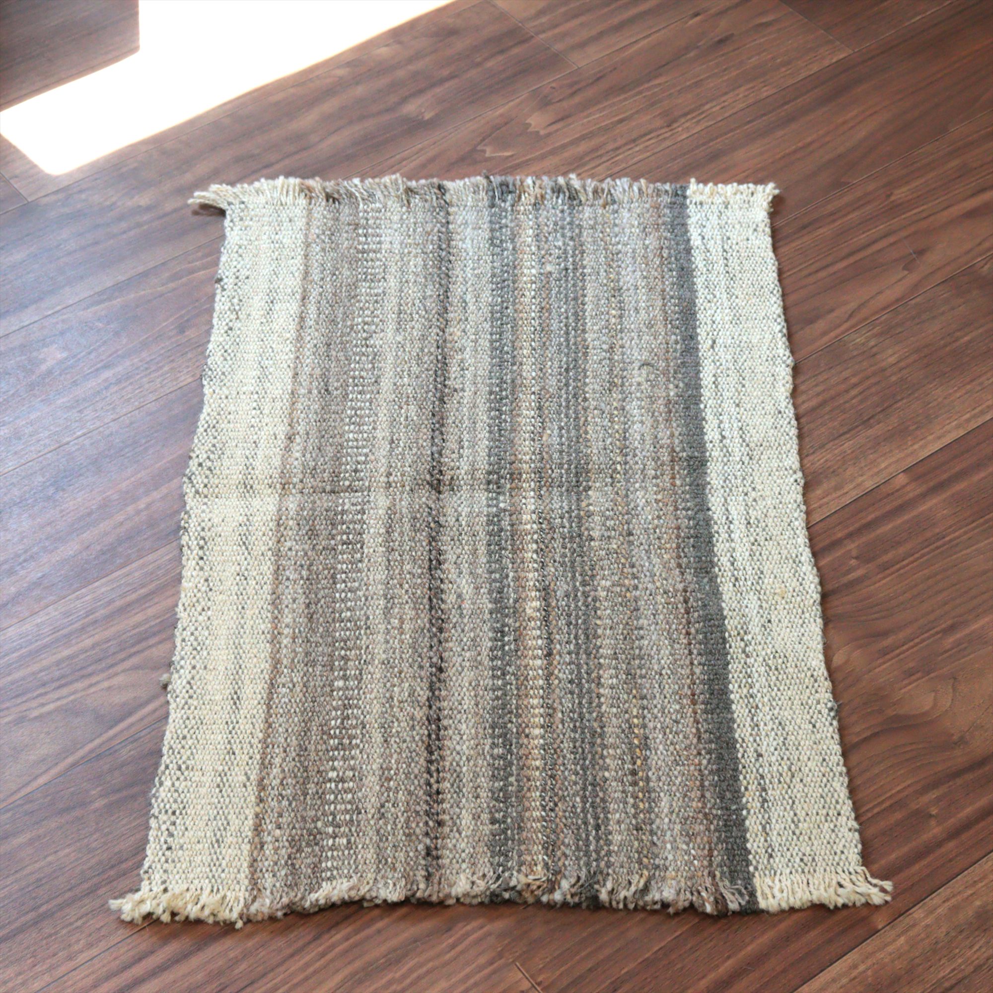 トルコの手織りキリム カルス76×51cm ブラウン&アイボリー ストライプ