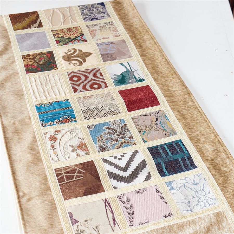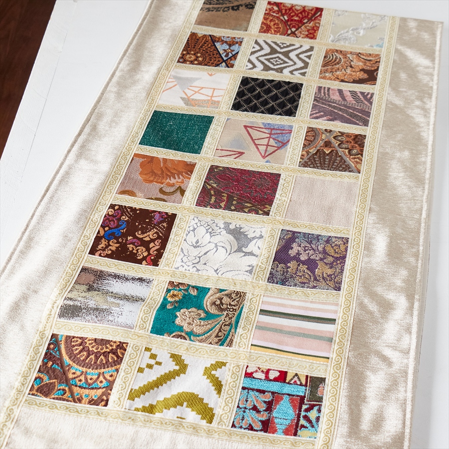 テーブルランナー モザイクパッチワーク 200x50cmサイズ シュニール素材