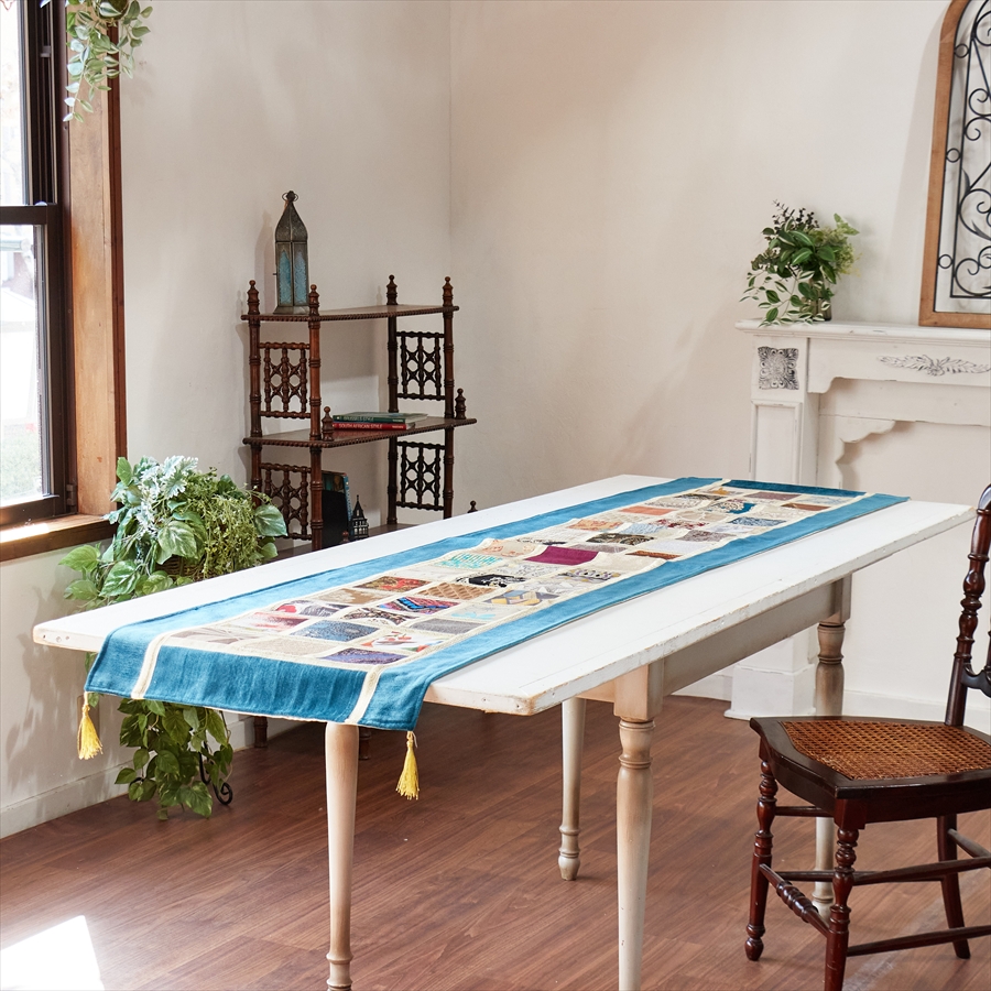 - テーブルランナー モザイクパッチワーク 200x50cmサイズ シュニール素材