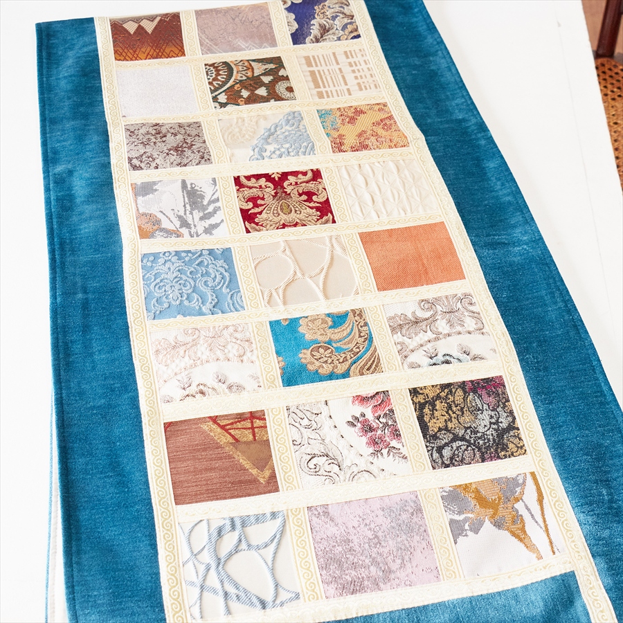 家具やカーテンなどに使われる、インテリアファブリックを使って仕立てたテーブルランナー。