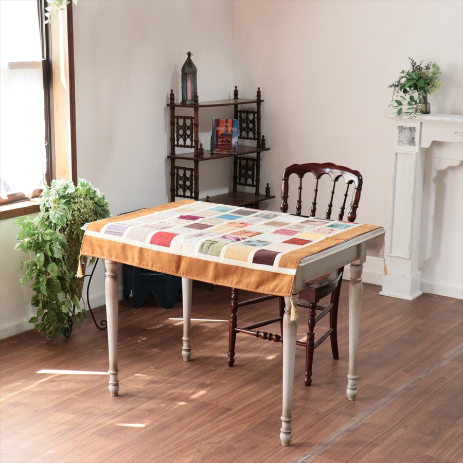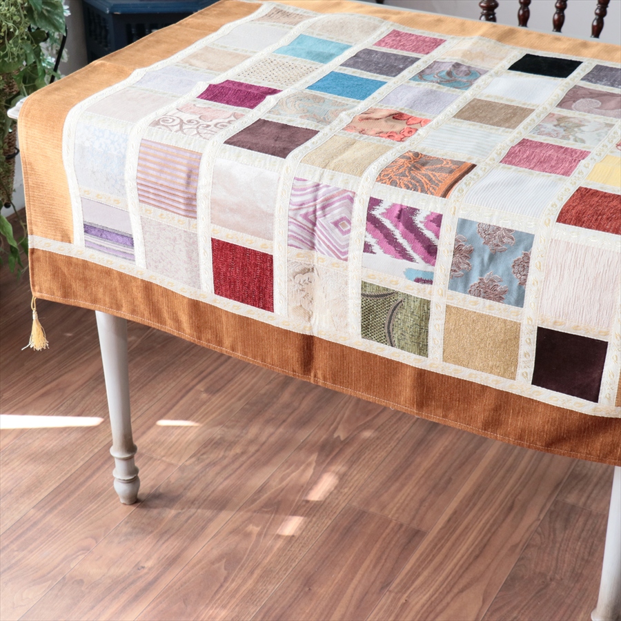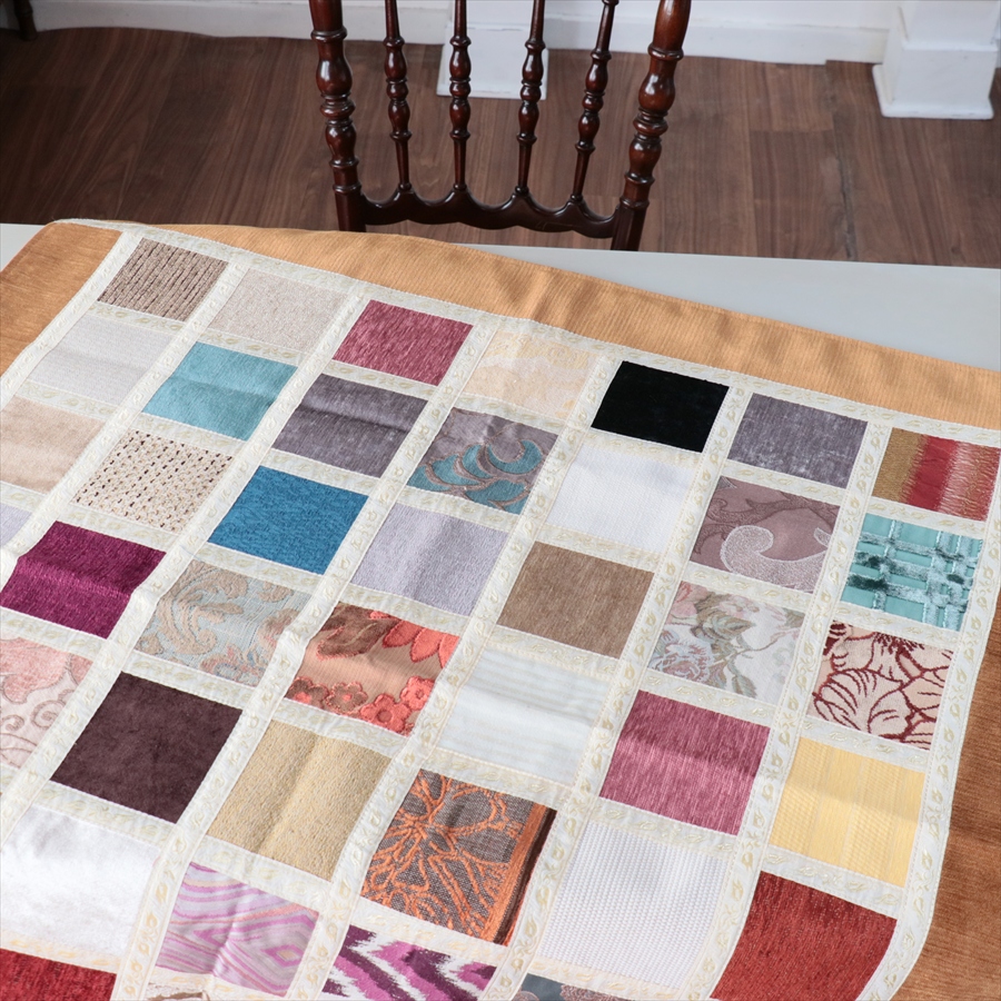 マルチカバー モザイクパッチワーク 95x95cmサイズ シュニール素材