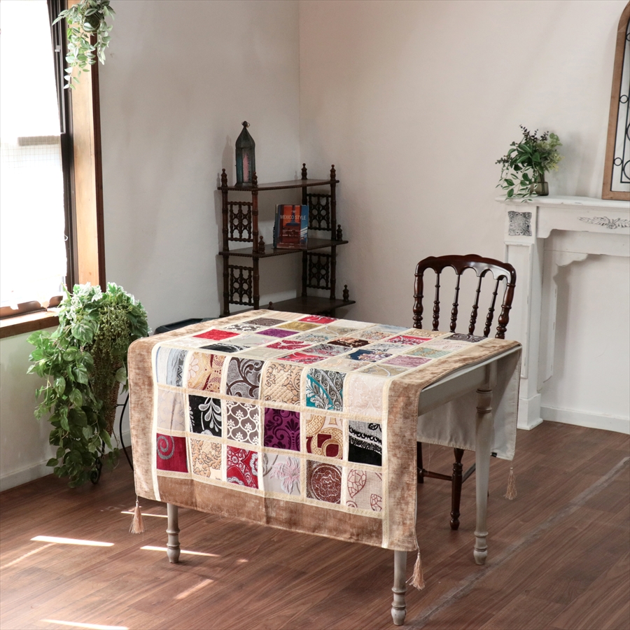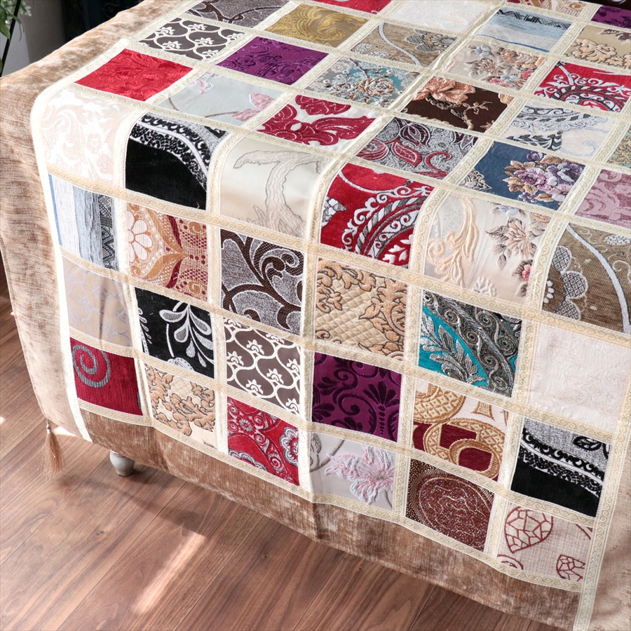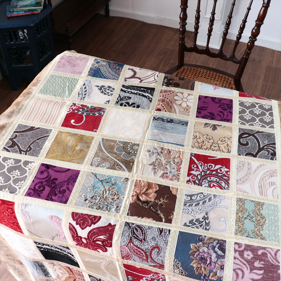 マルチカバー モザイクパッチワーク 150x98cmサイズ シュニール素材