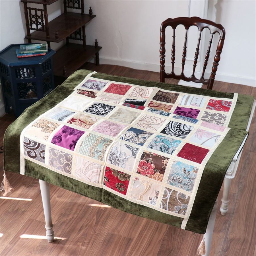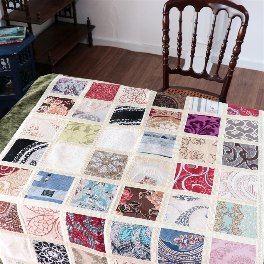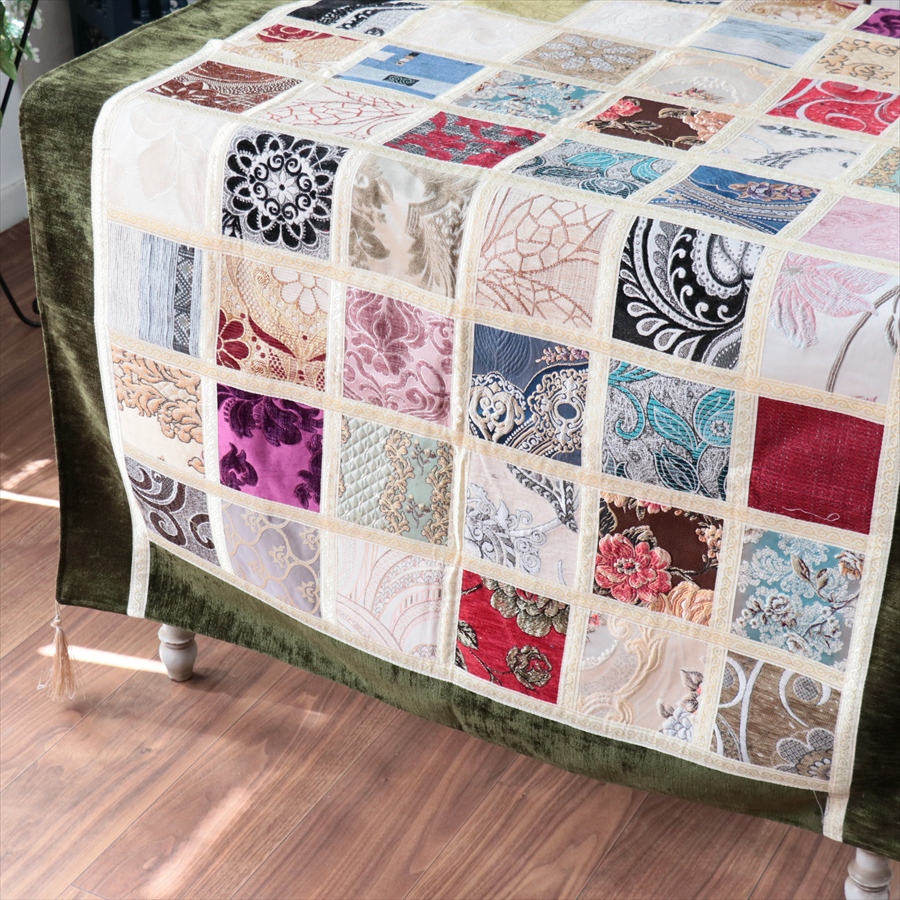 マルチカバー モザイクパッチワーク 150x98cmサイズ シュニール素材