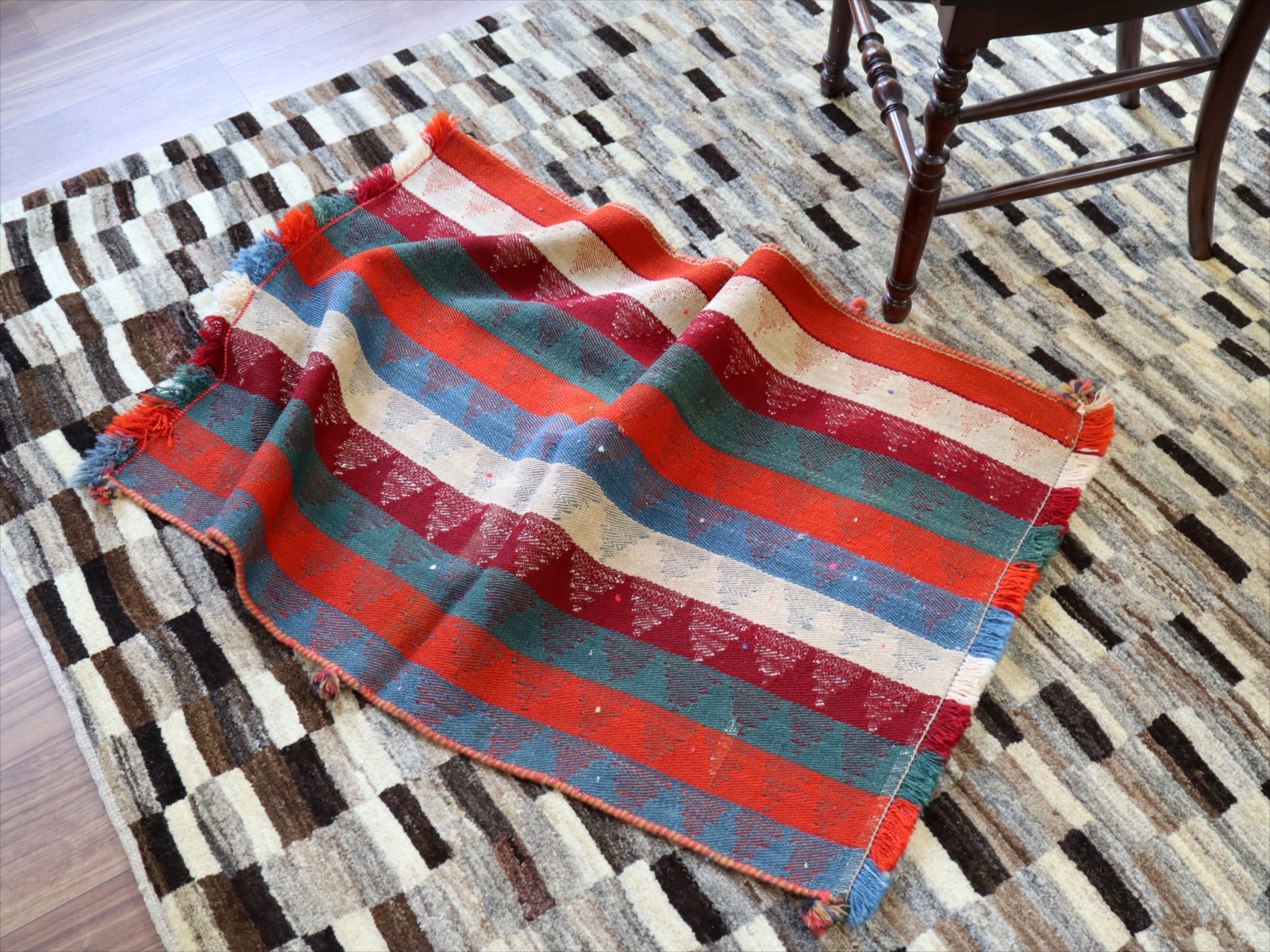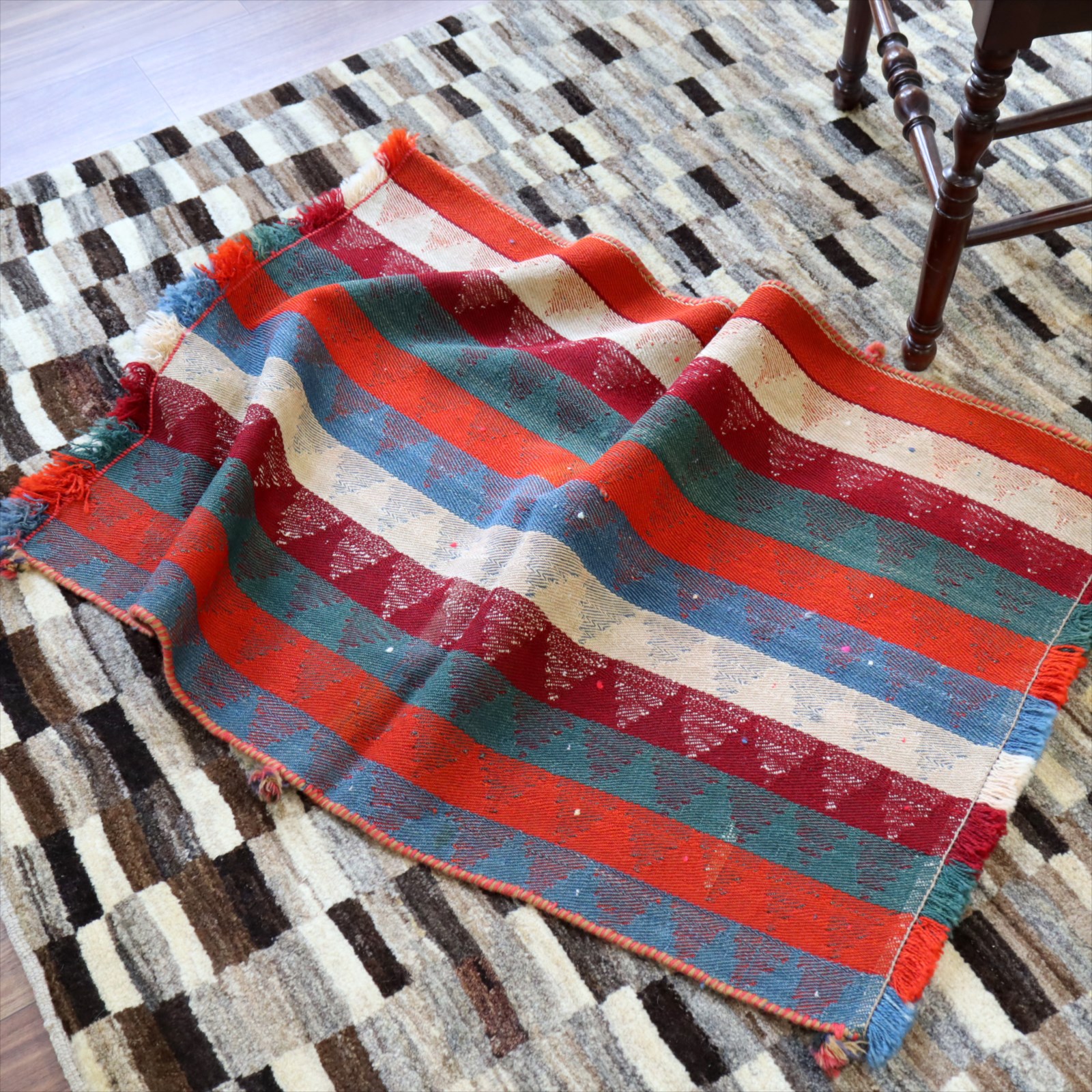装飾用のキリムと言っても、しっかりとした厚みがありますので、フロアに敷いてもお使いいただけます。