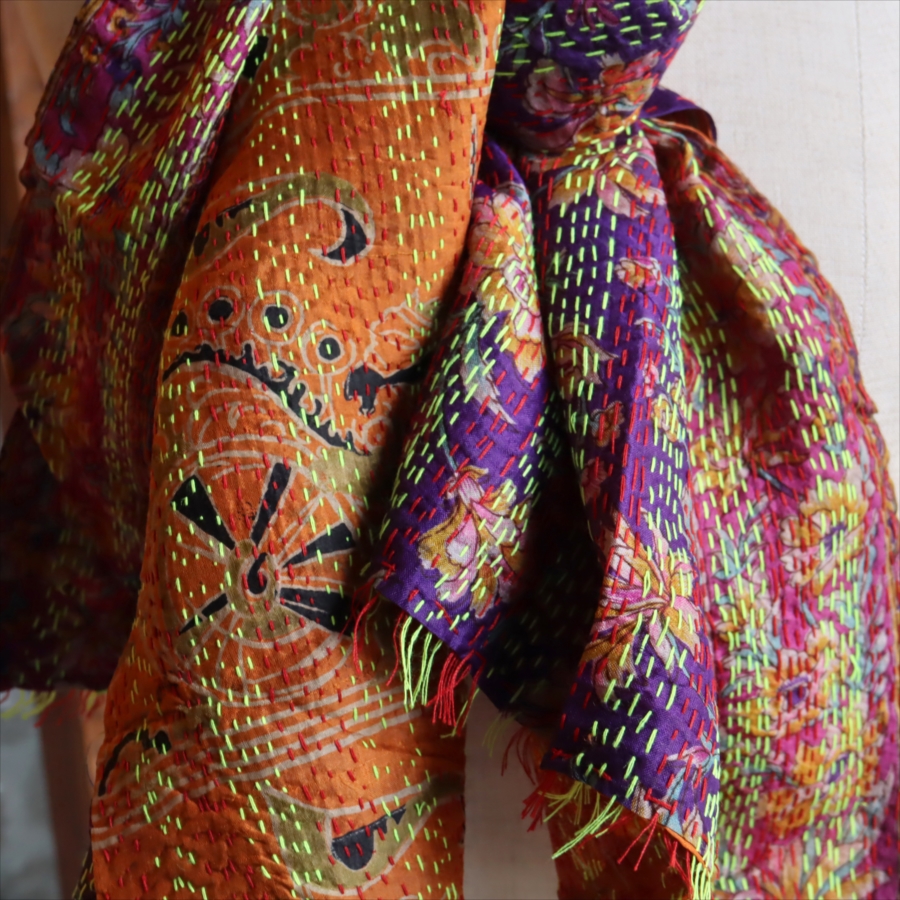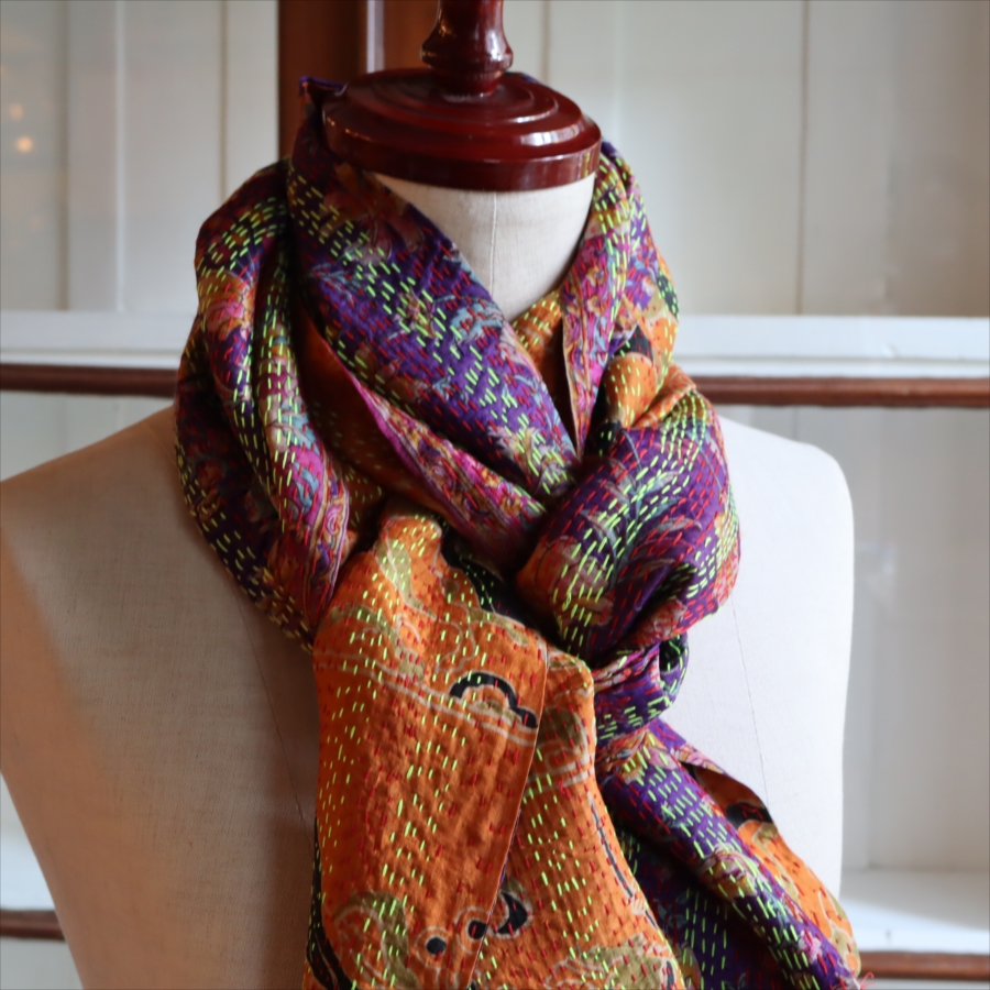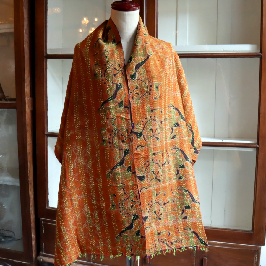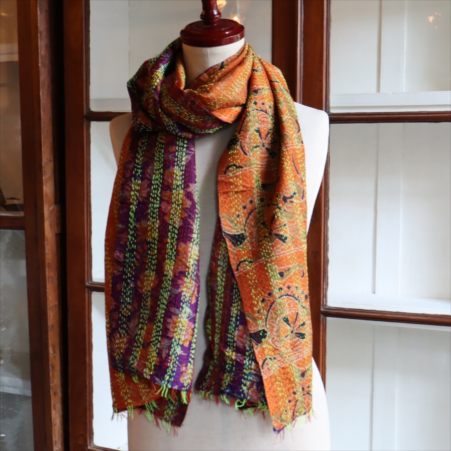 - カンタ刺繍 シルクストール Kantha embroidery, India 178×48cm 【一点もの 現品】