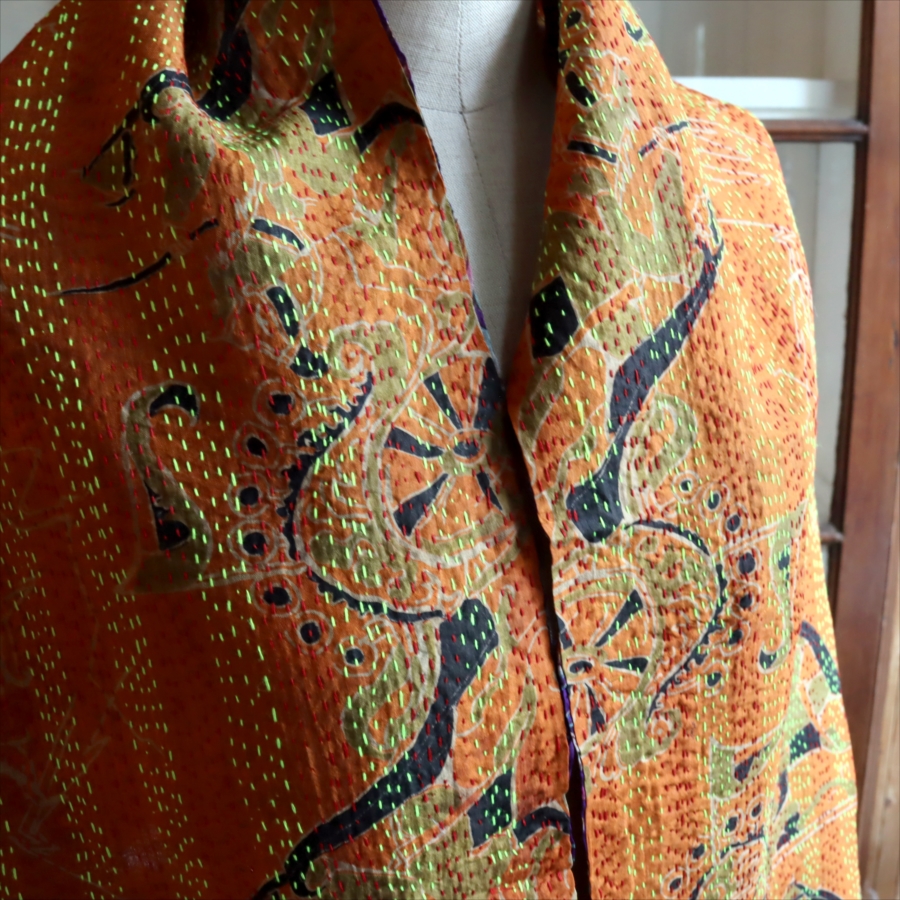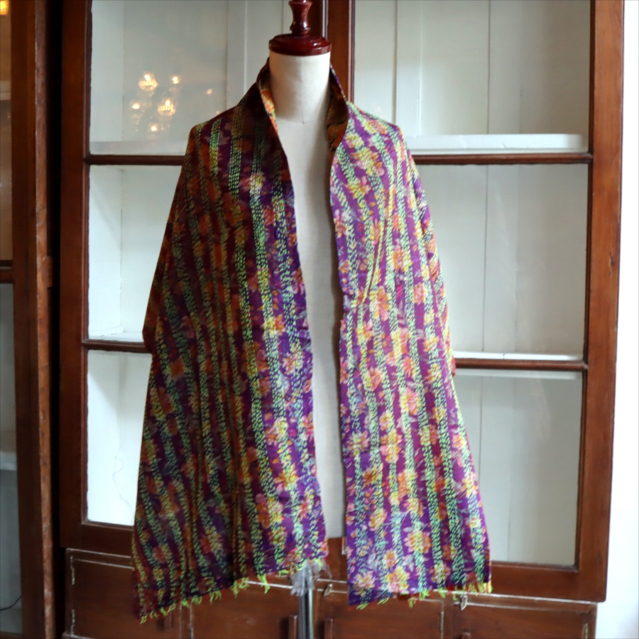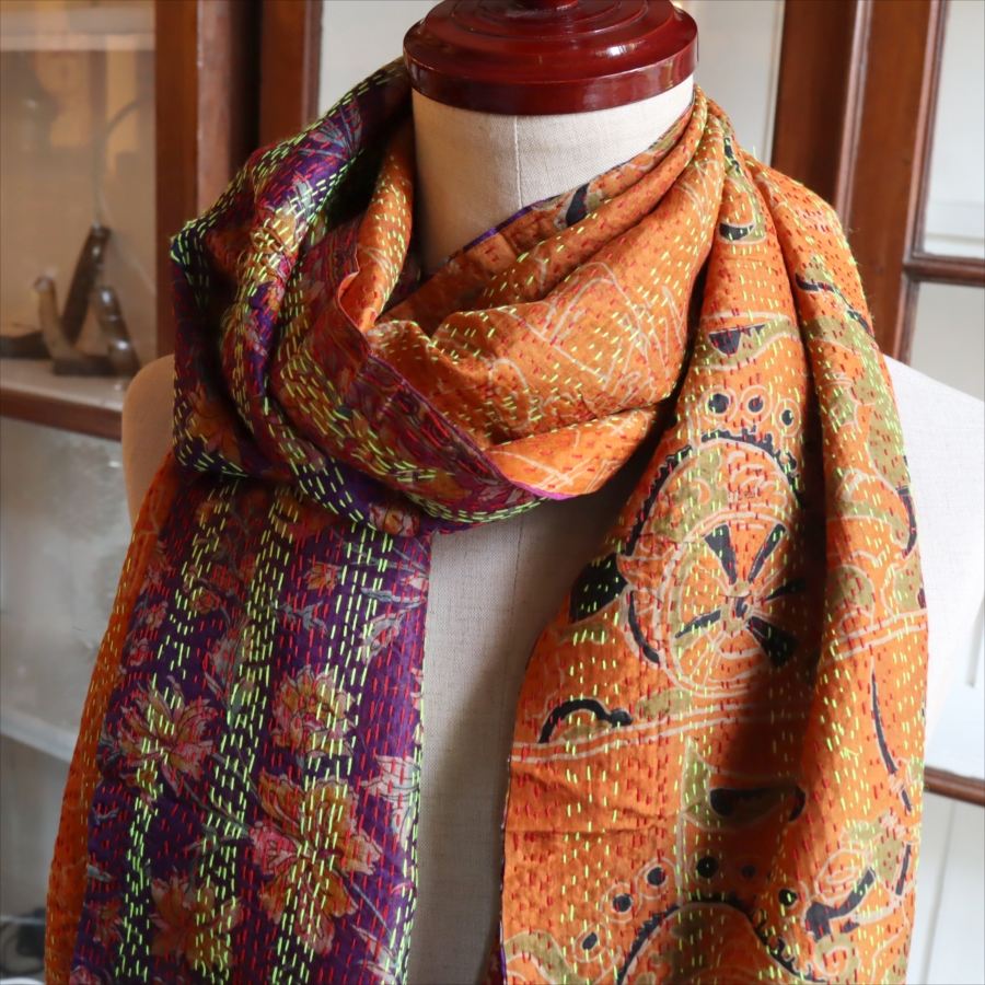 カンタ刺繍 シルクストール Kantha embroidery, India 178×48cm 【一点もの 現品】