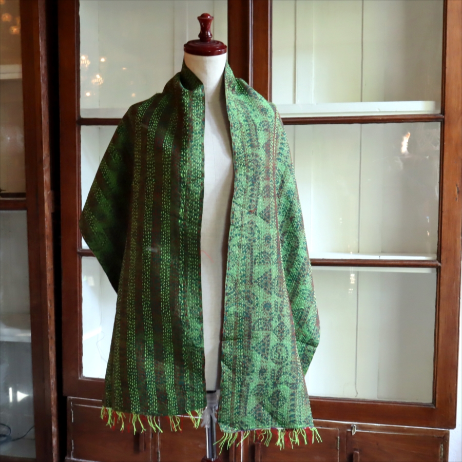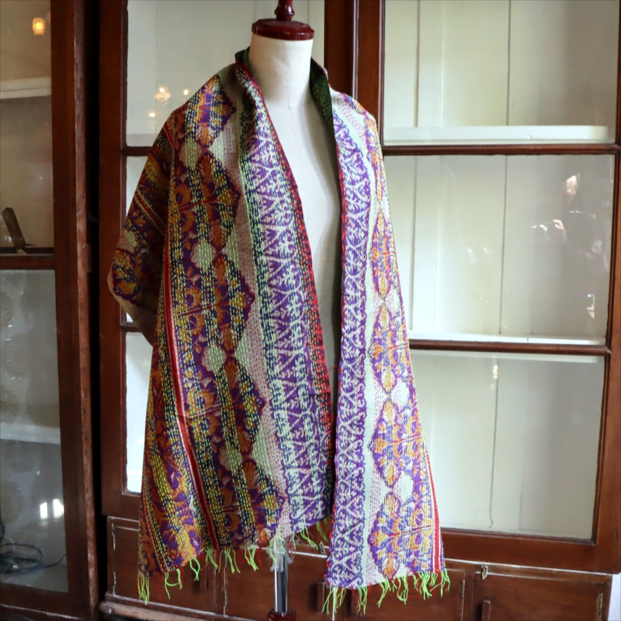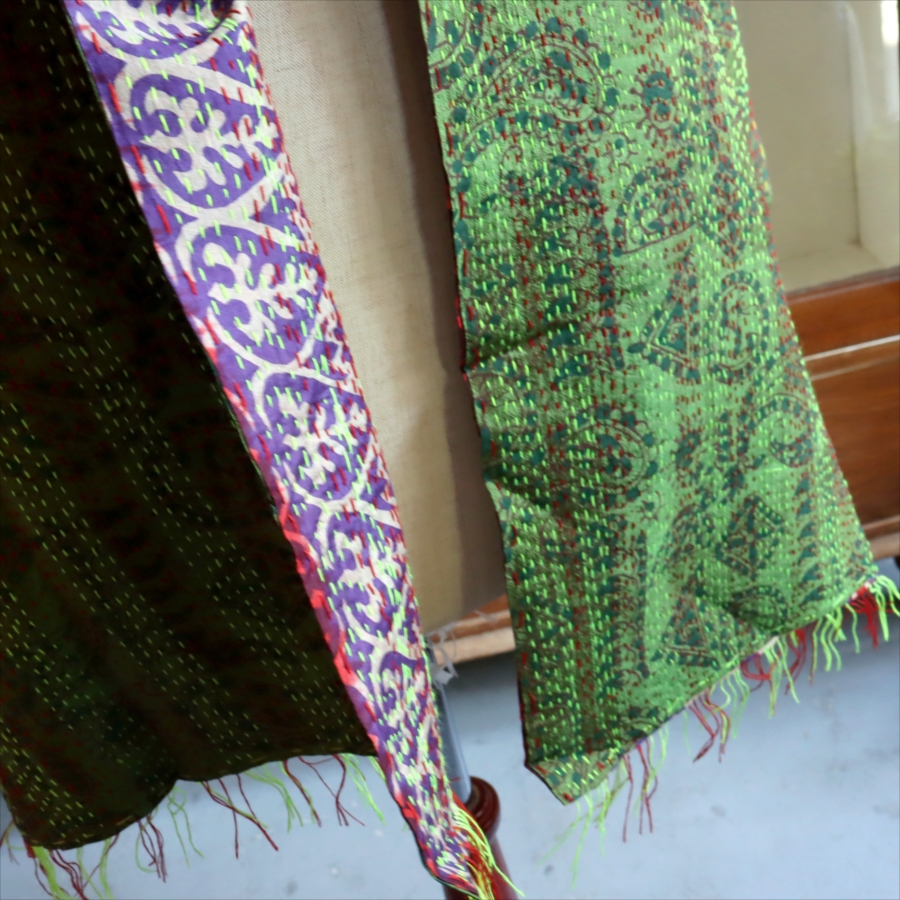 カンタ刺繍 シルクストール Kantha embroidery, India 171×44cm 【一点もの 現品】