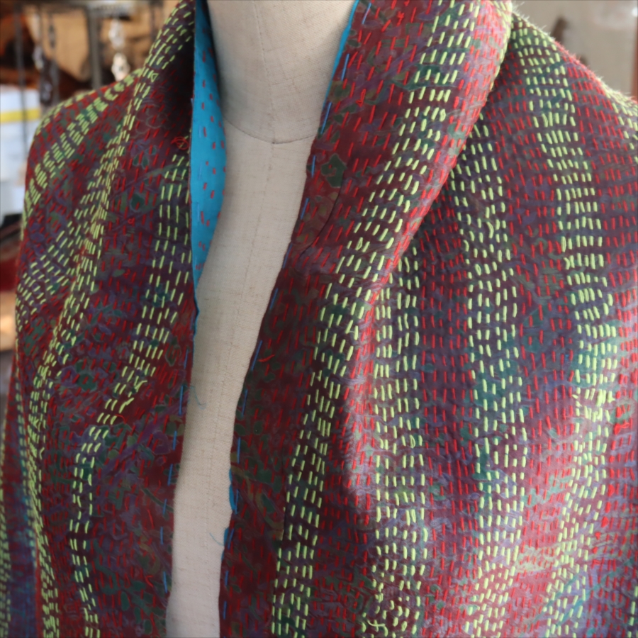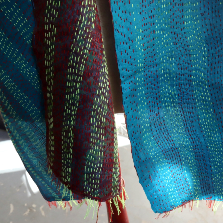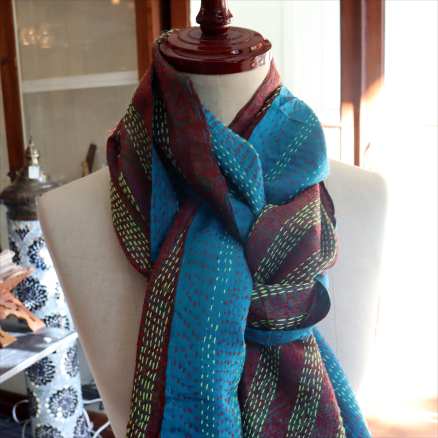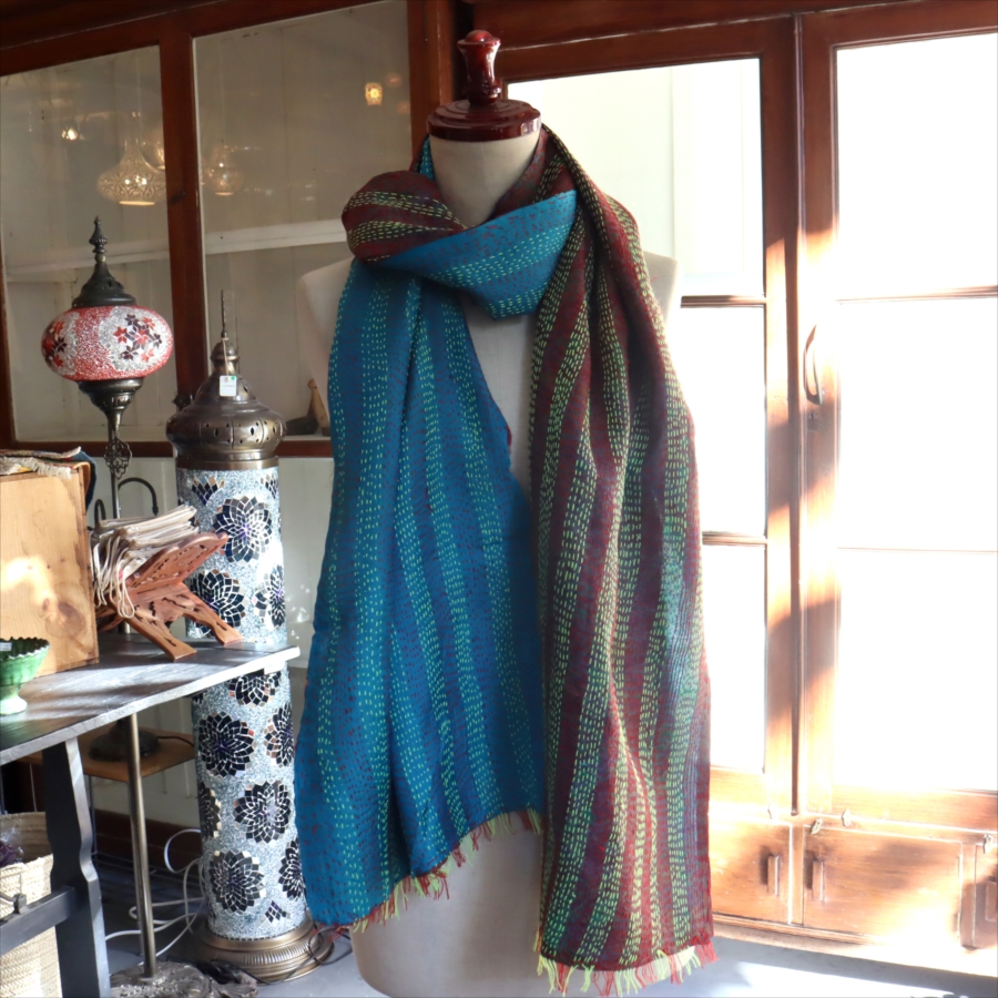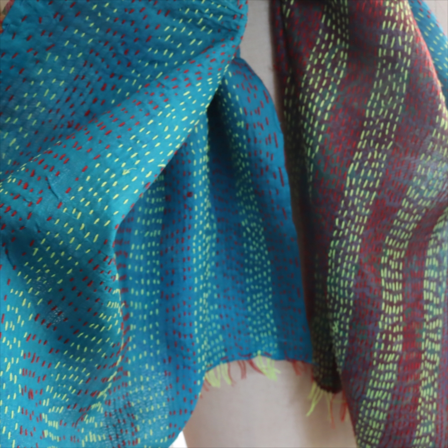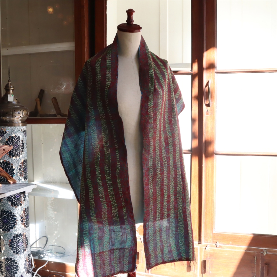 - カンタ刺繍 シルクストール Kantha embroidery, India 195×40cm 【一点もの 現品】