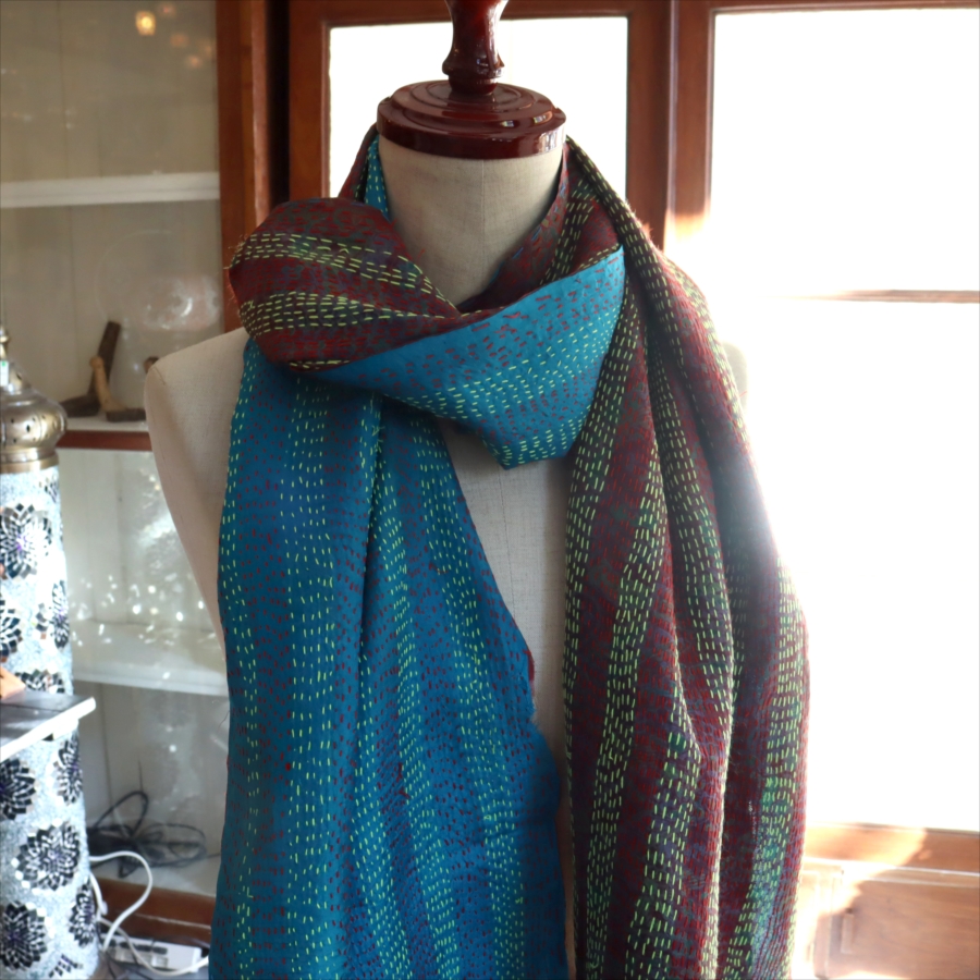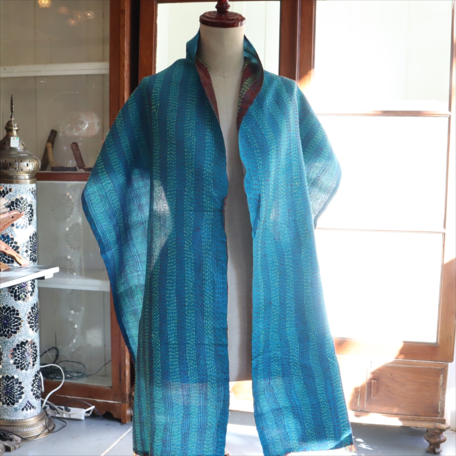 カンタ刺繍 シルクストール Kantha embroidery, India 195×40cm 【一点もの 現品】