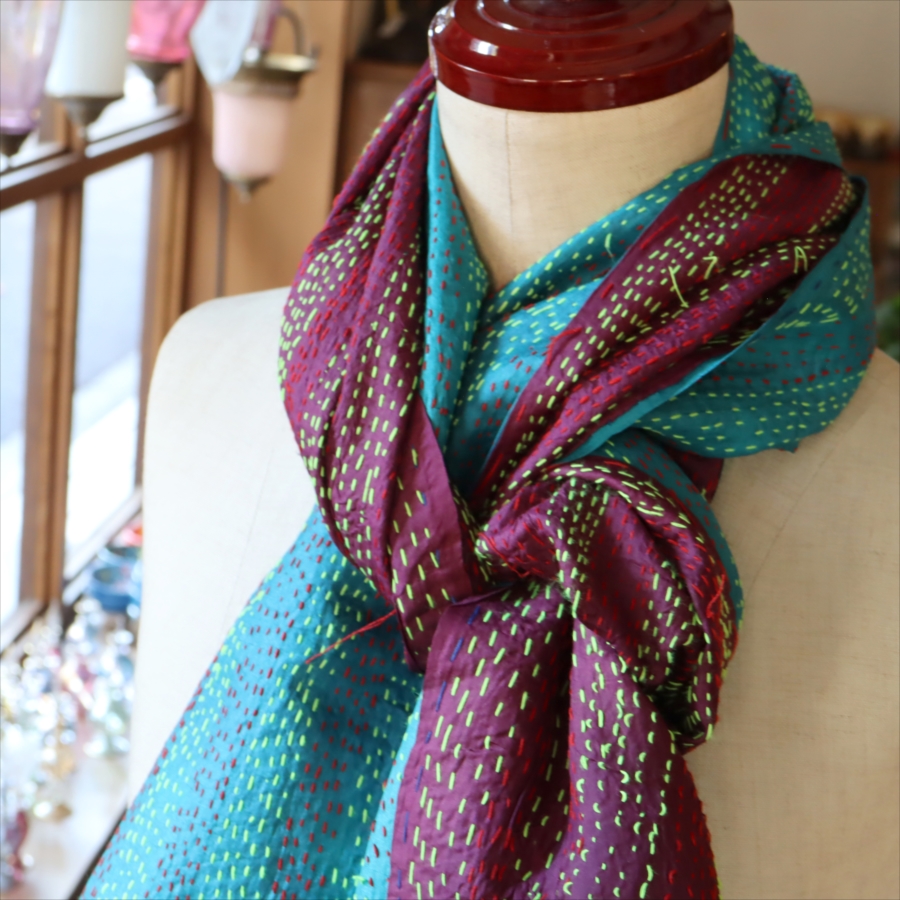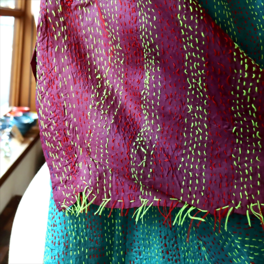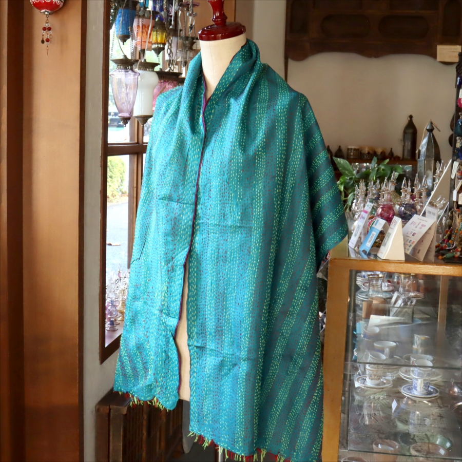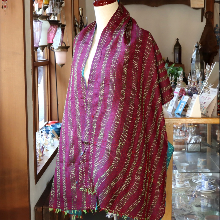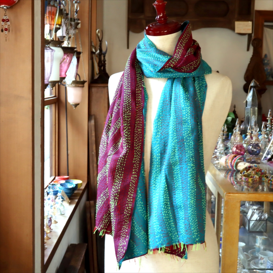 - カンタ刺繍 シルクストール Kantha embroidery, India 176×48cm 【一点もの 現品】