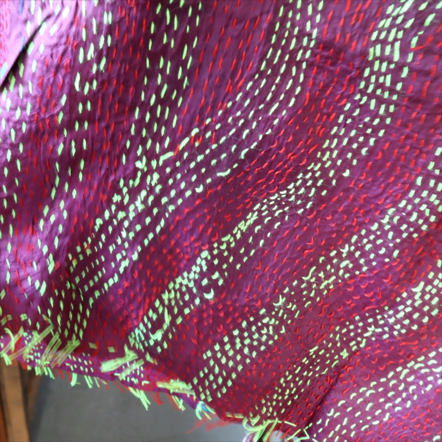カンタ刺繍 シルクストール Kantha embroidery, India 176×48cm 【一点もの 現品】
