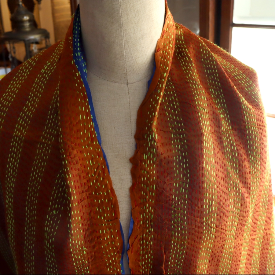 カンタ刺繍 シルクストール Kantha embroidery, India 184×48cm 【一点もの 現品】
