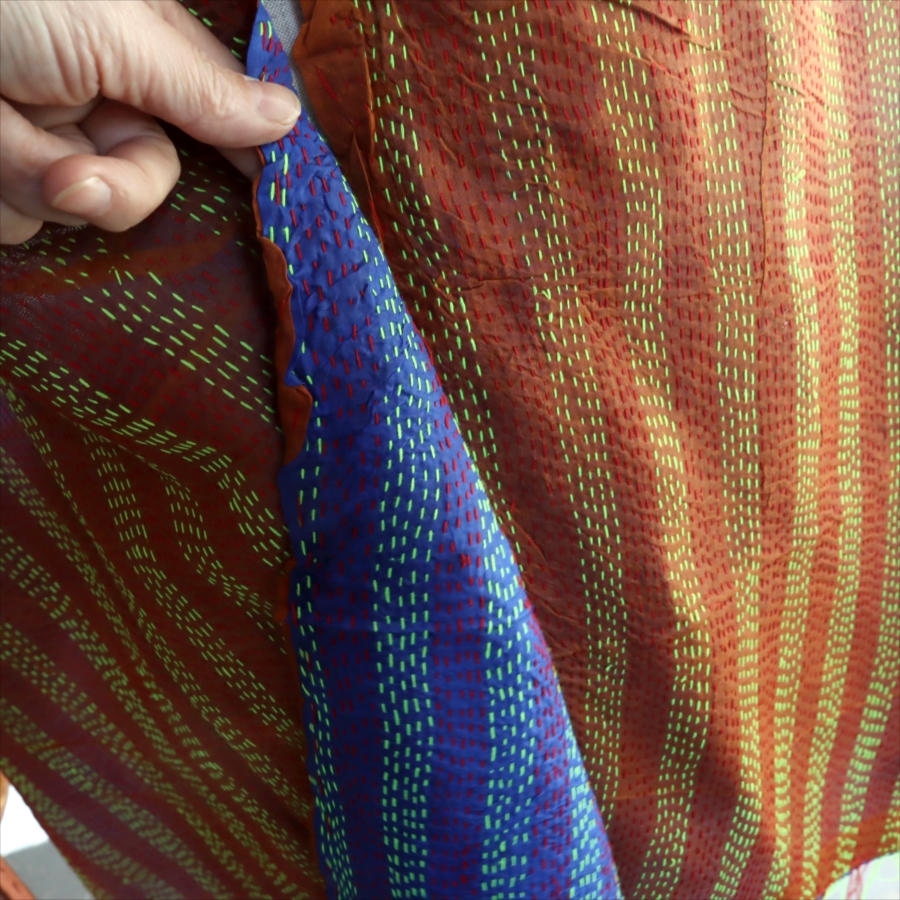- カンタ刺繍 シルクストール Kantha embroidery, India 184×48cm 【一点もの 現品】