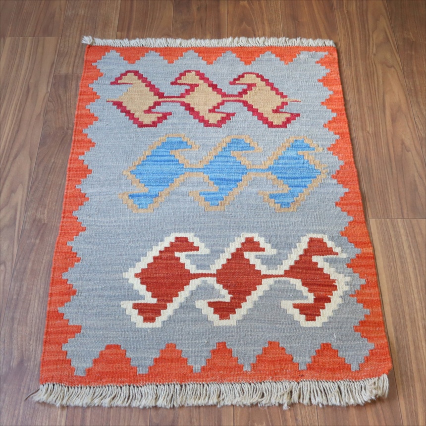 手織りキリム イラン シラーズ96×66cm カラフルな幾何学モチーフ