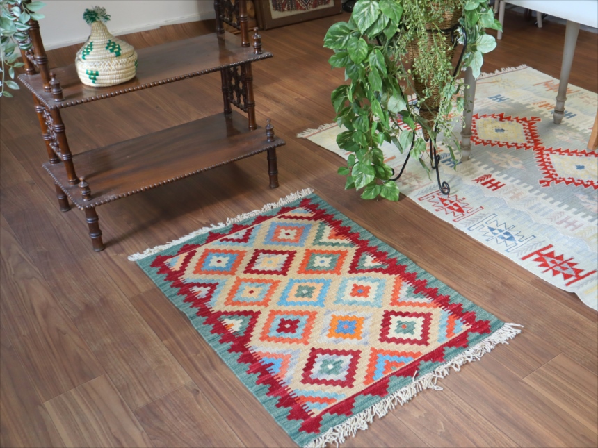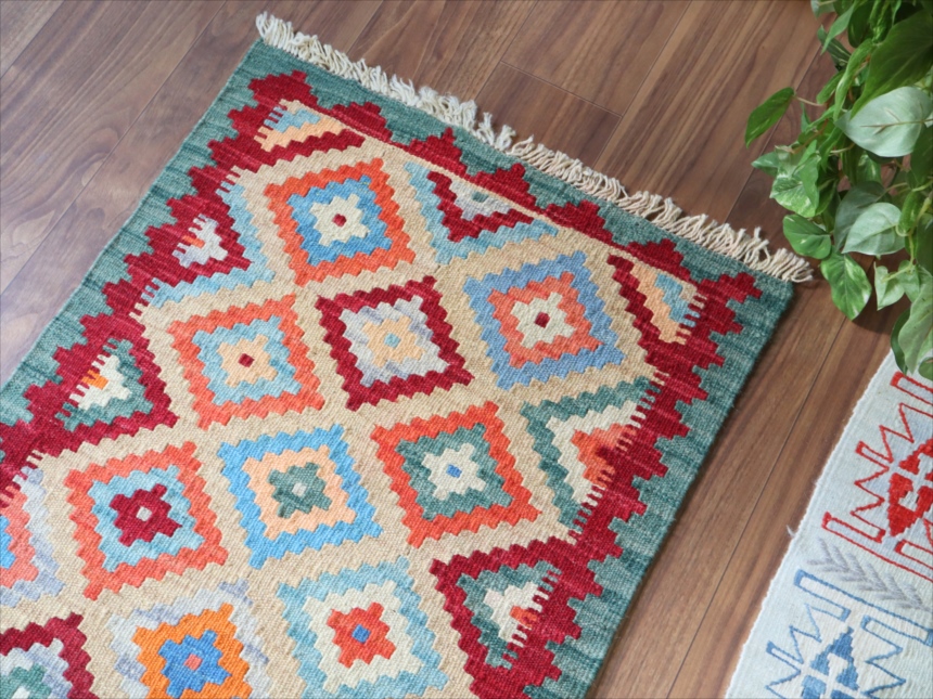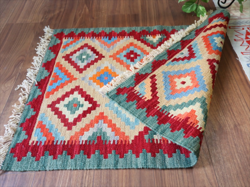 手織りキリム イラン シラーズ86×63cm カラフルな幾何学モチーフ