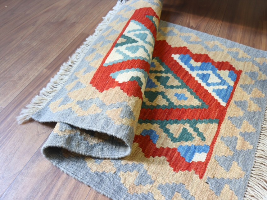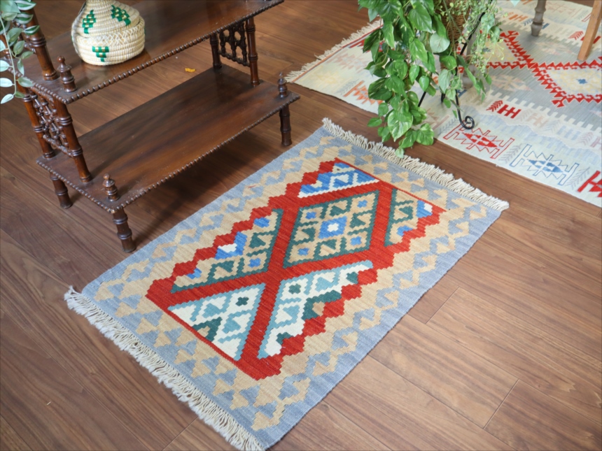手織りキリム イラン シラーズ92×66cm カラフルな幾何学モチーフ
