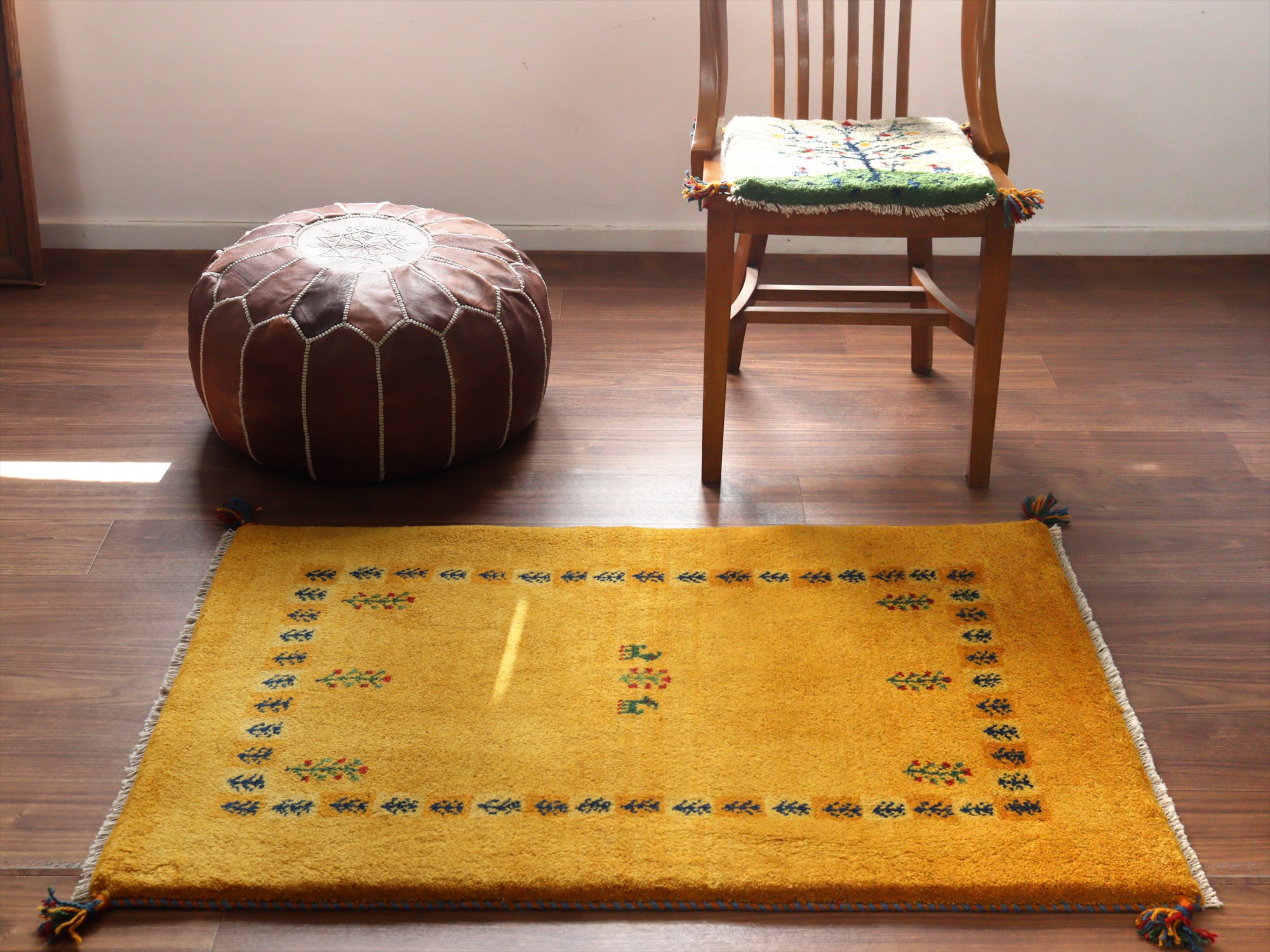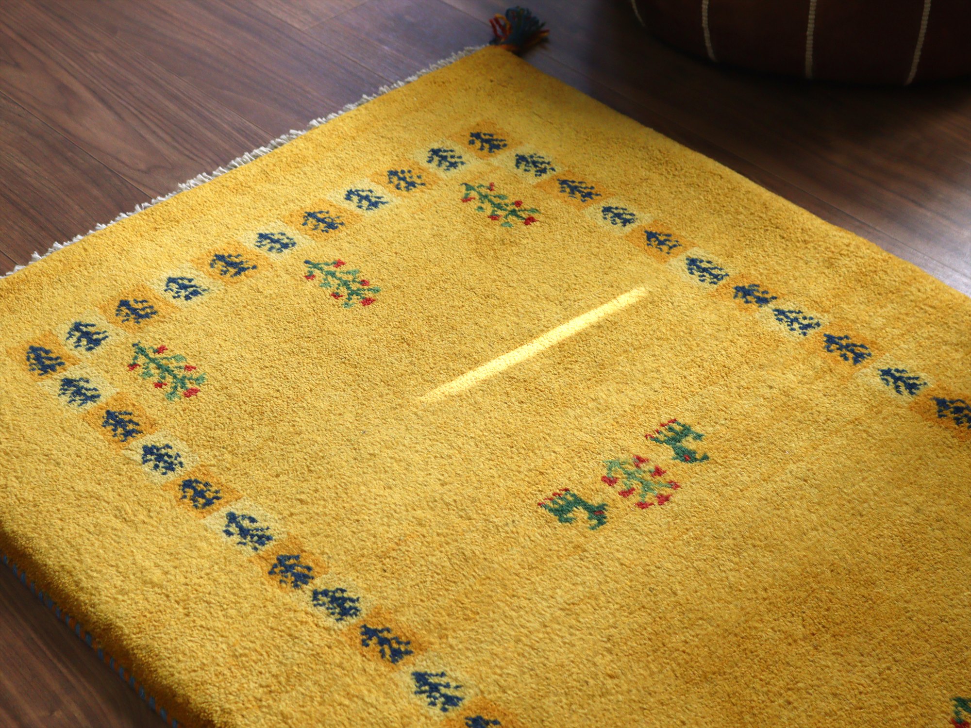Key:ギャベ, ラグ, 手織り絨毯, 部族絨毯, 草木染, カシュカイ族, ウール製,センターラグ, イエロー, 黄色, 東京,中野区, ガラタバザール, Gabbeh, Tribal Rug, Hand knotted, wool, Natural dye, Shiraz, Fars, Quashkai