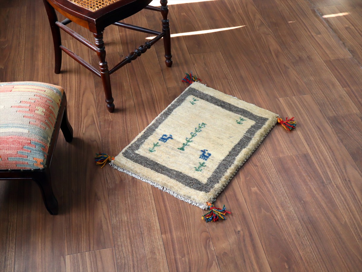 - ギャッベ ミニギャベ イラン手織り 57×41cm ナチュラルアイボリー 生命の樹と動物