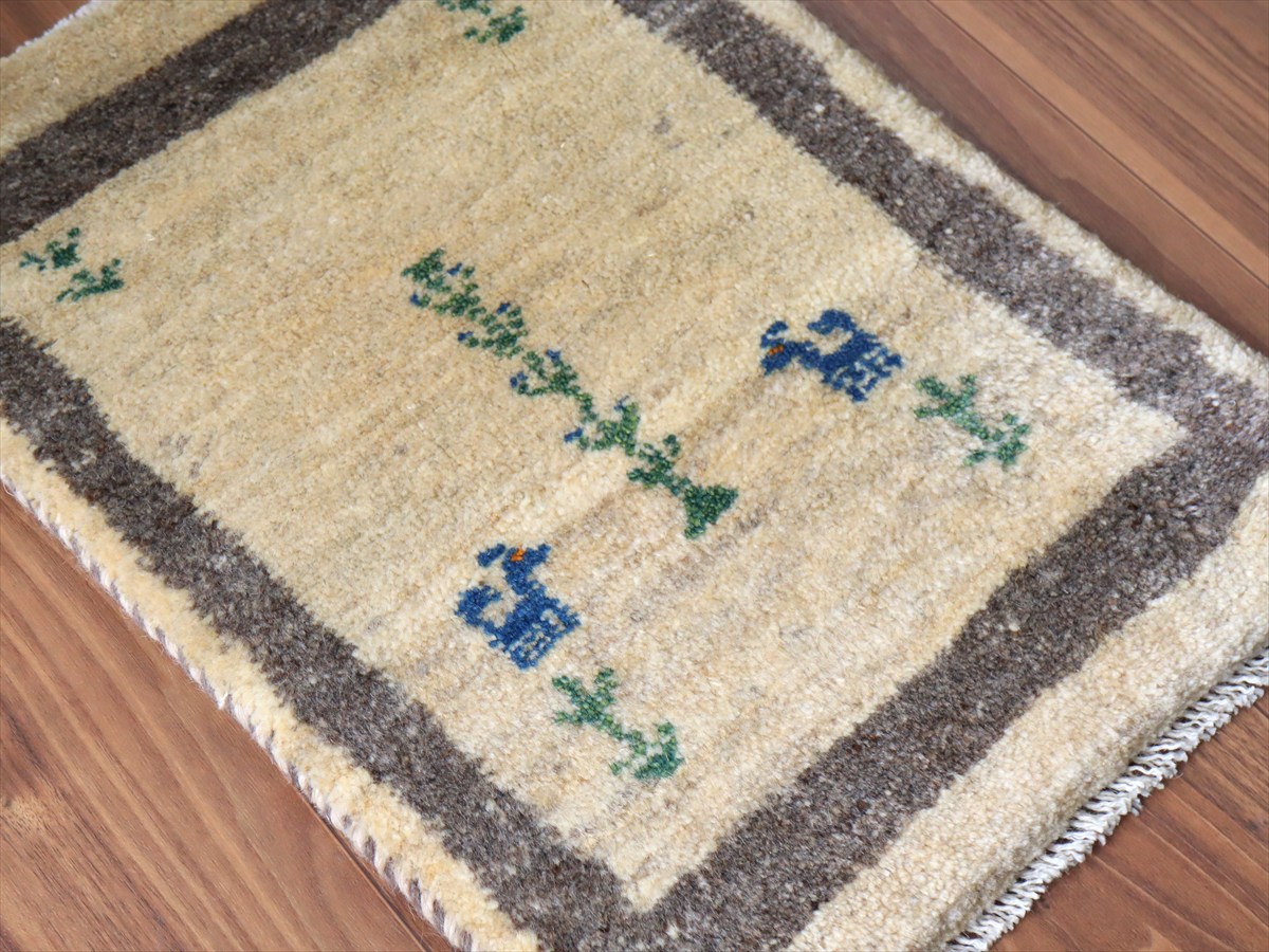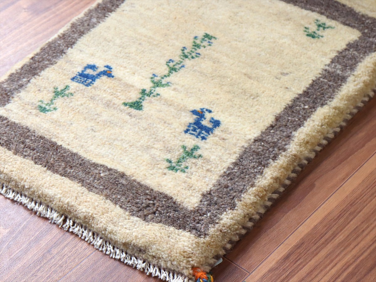 ギャッベ ミニギャベ イラン手織り 57×41cm ナチュラルアイボリー 生命の樹と動物
