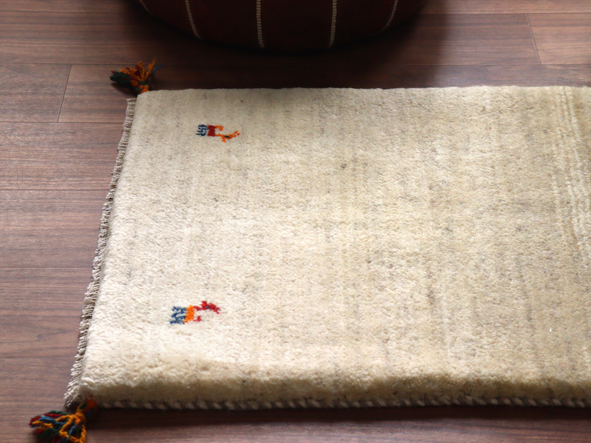 ギャッベ イラン産手織りラグ 87x60cm シンプルデザイン アイボリー