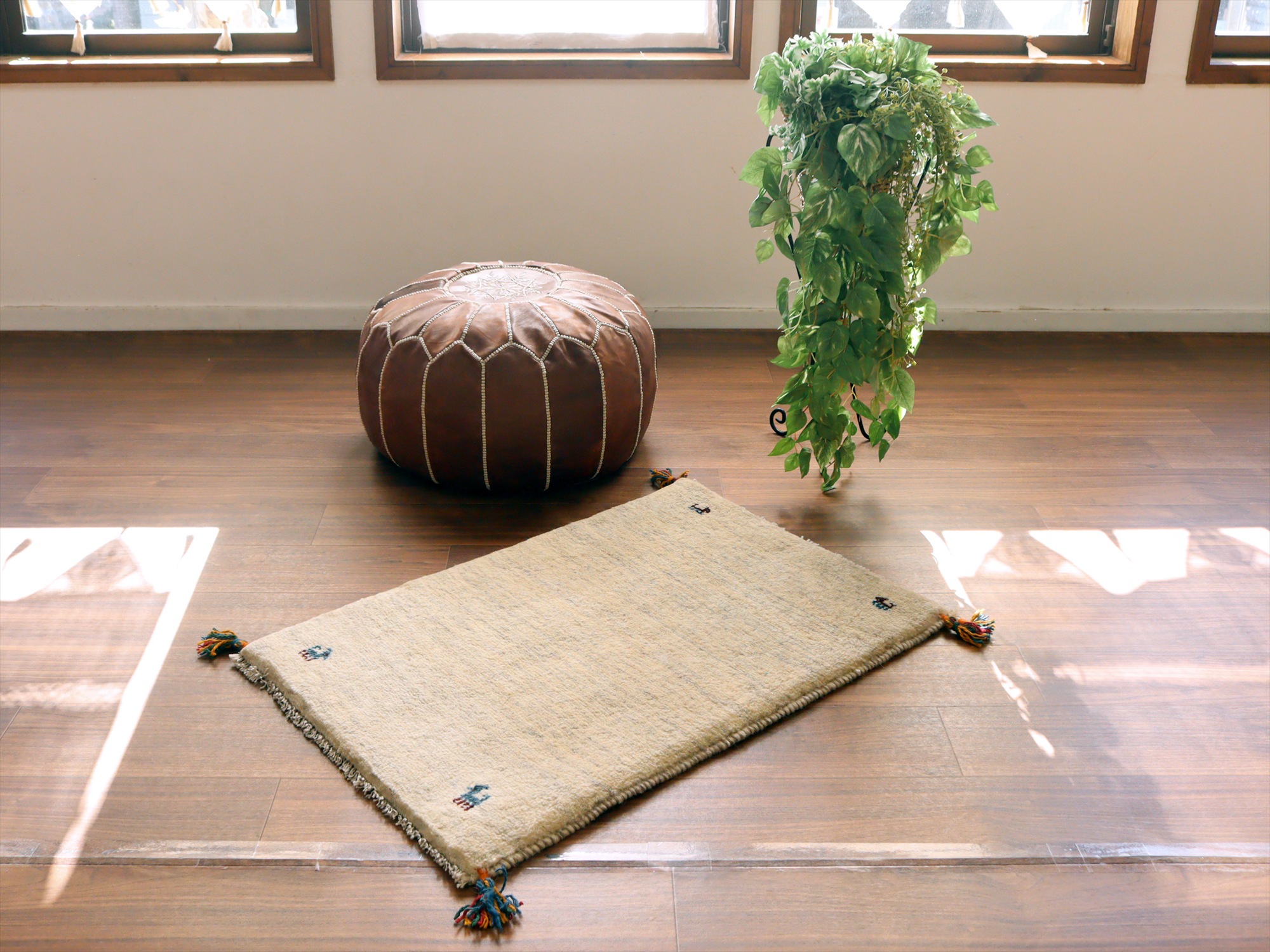 5. ギャッベ イラン産手織りラグ 88x60cm シンプルモチーフ アイボリー