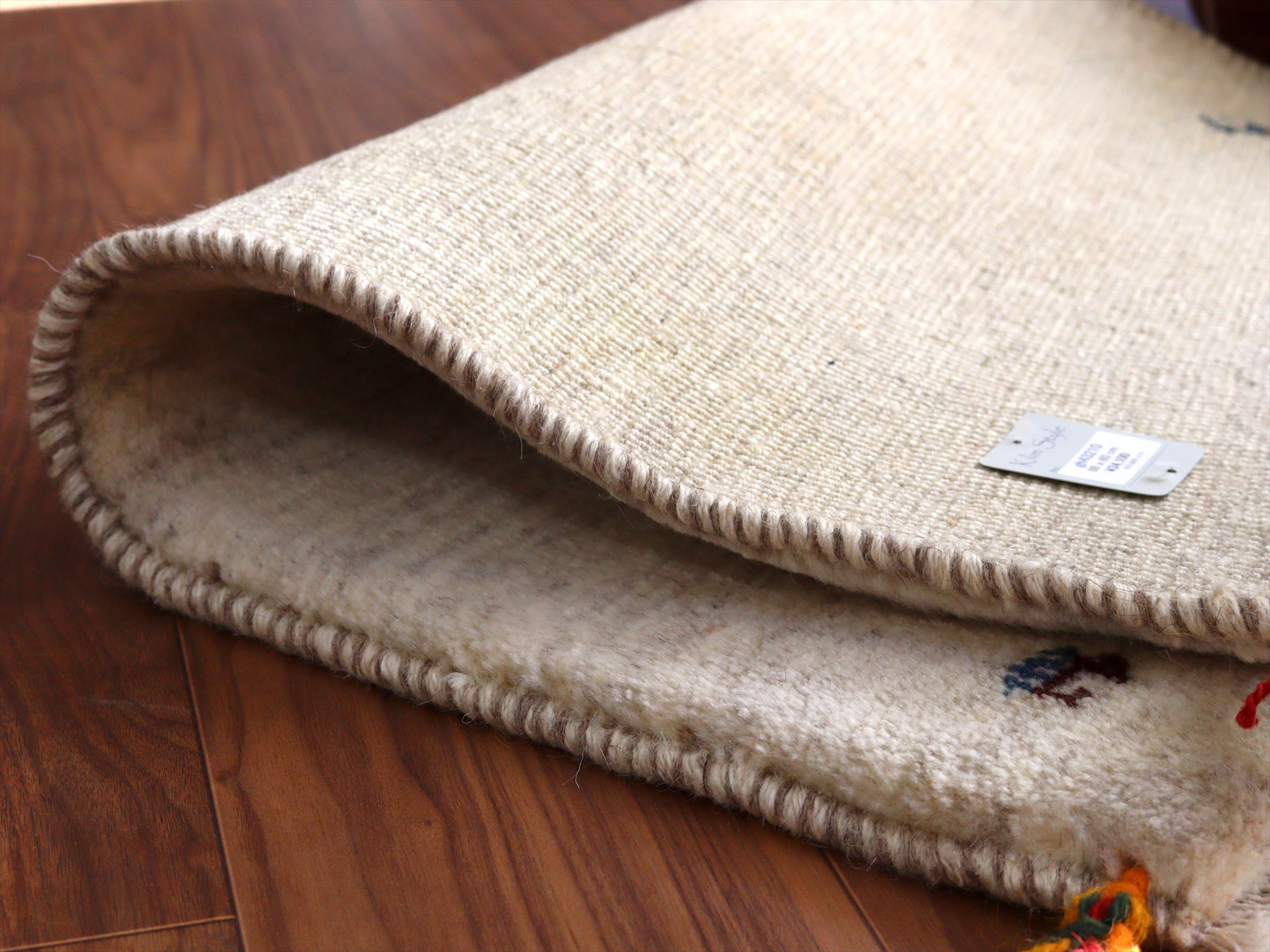 6. ギャッベ イラン産手織りラグ 88x60cm シンプルモチーフ アイボリー