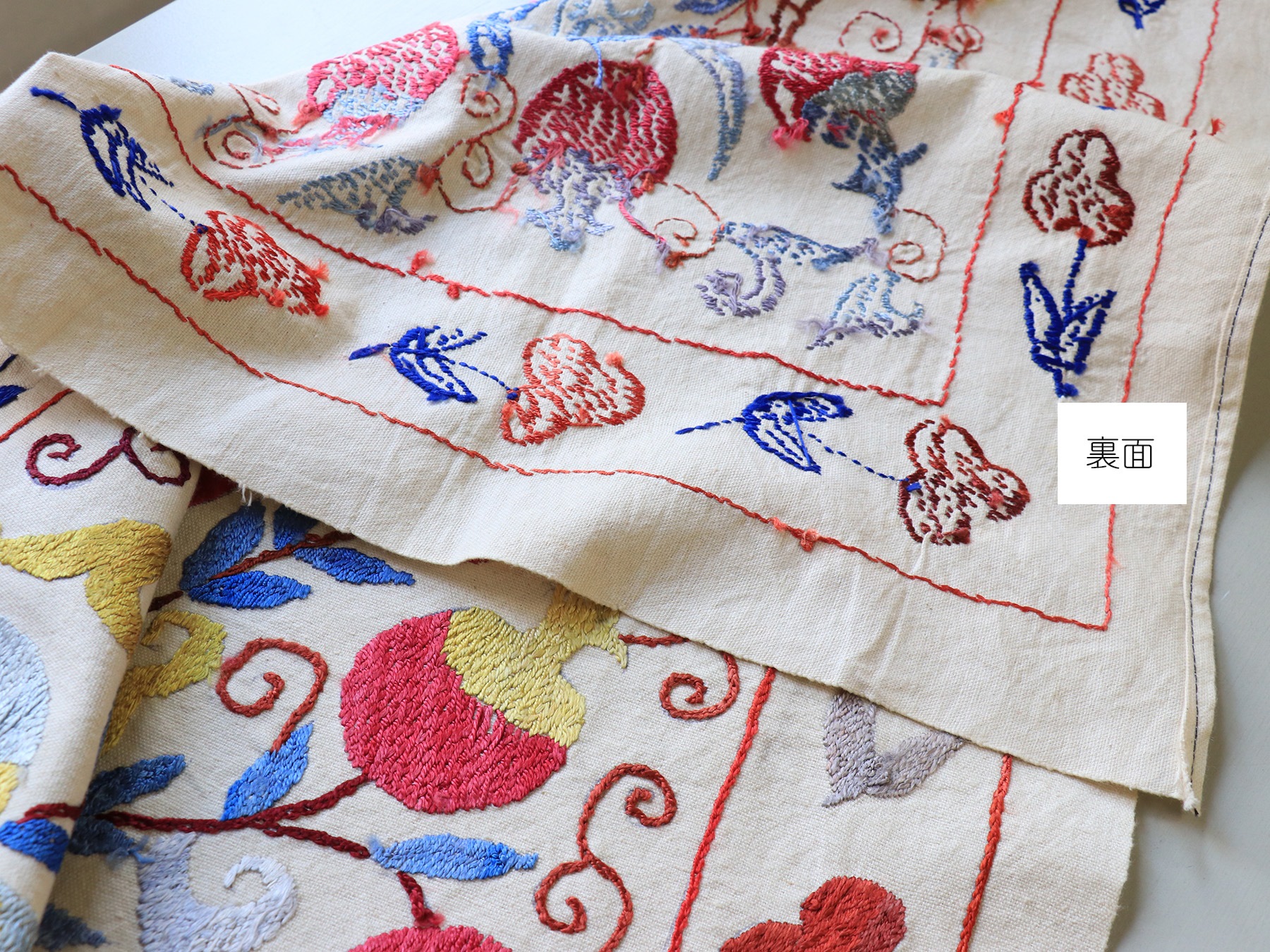 スザンニ刺繍布 ウズベキスタン86×50cm ザクロのブーケ テーブルセンター