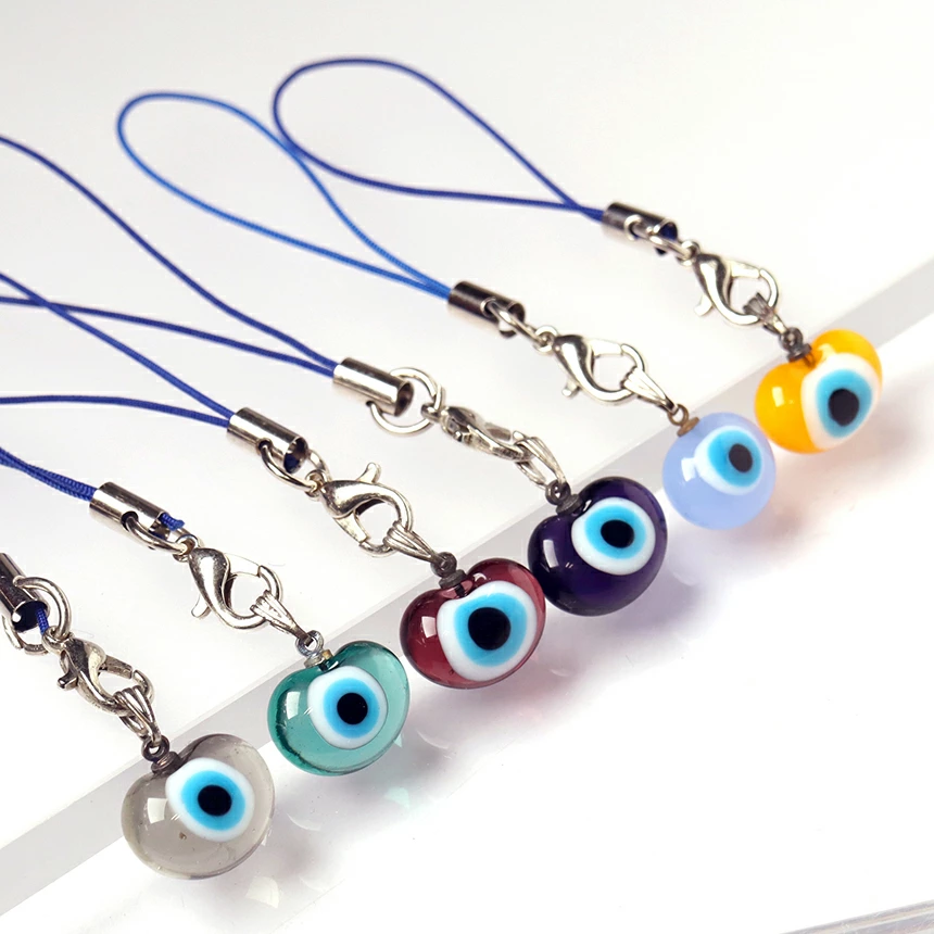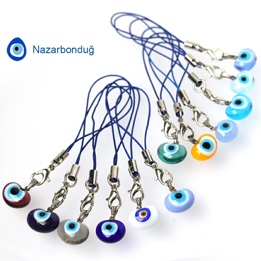 地中海に伝わる目玉のお守り、ナザルが付いたストラップ。キーホルダーの代わりにもオススメです。