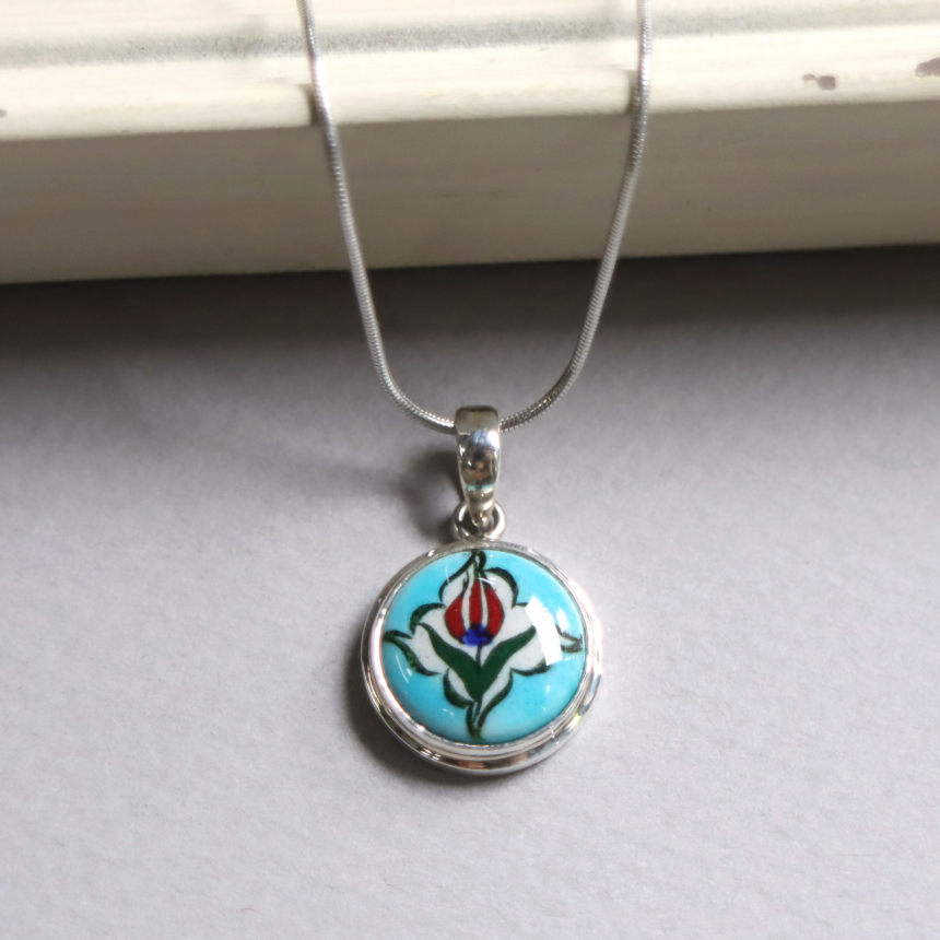トルコ陶器産業の中心、キュタフヤで手描きされた小さな陶板がモチーフになっています。