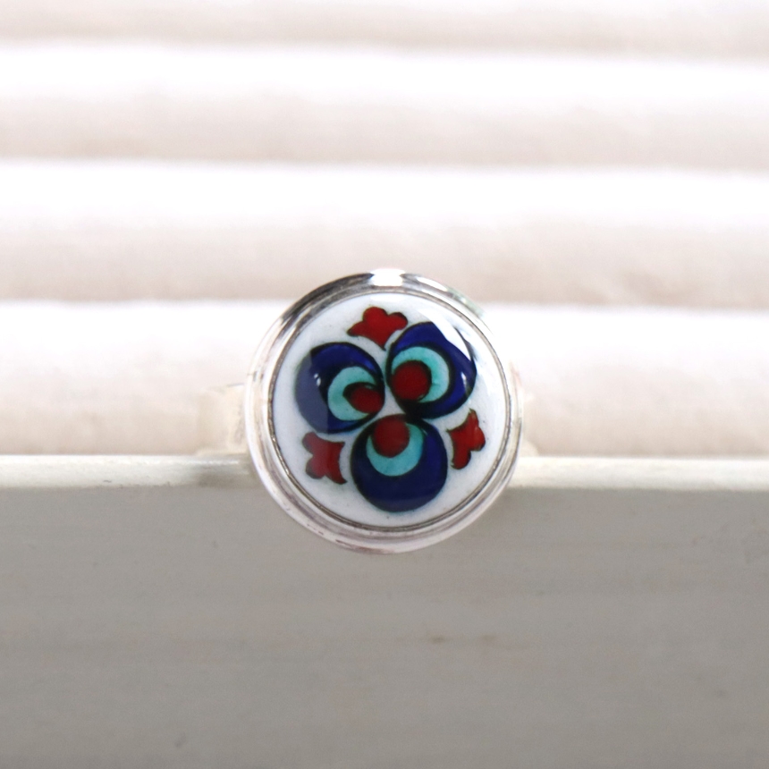 トルコ キュタフヤは陶芸の街!トルコの職人が、ひとつひとつ手描きで絵付けした小さな陶器をモチーフにしたシルバーリングです。