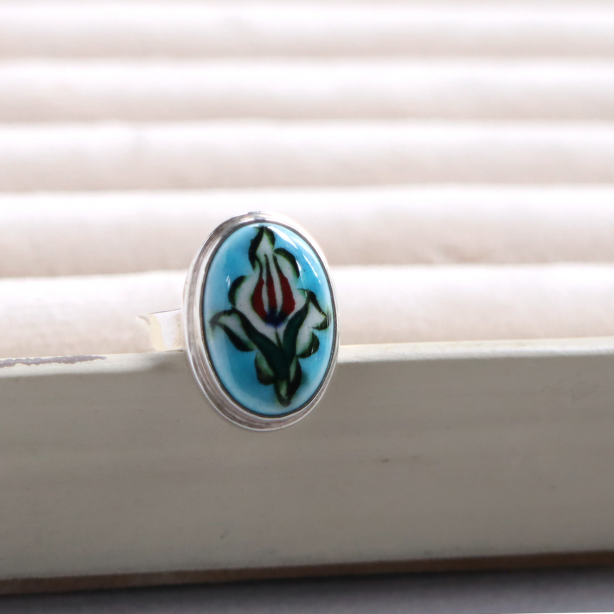 Key:陶器アクセサリー シルバーリング トルコ トルコ雑貨 キュタフヤ陶器 セラミック ハンドメイド 手描き トルコジュエリー