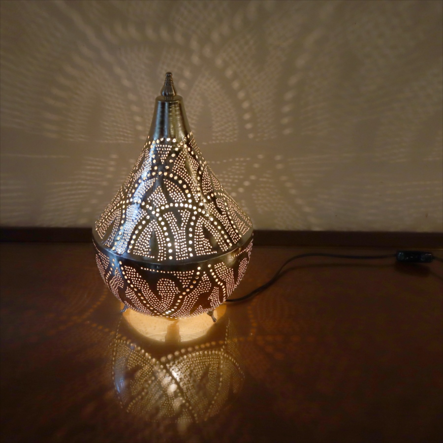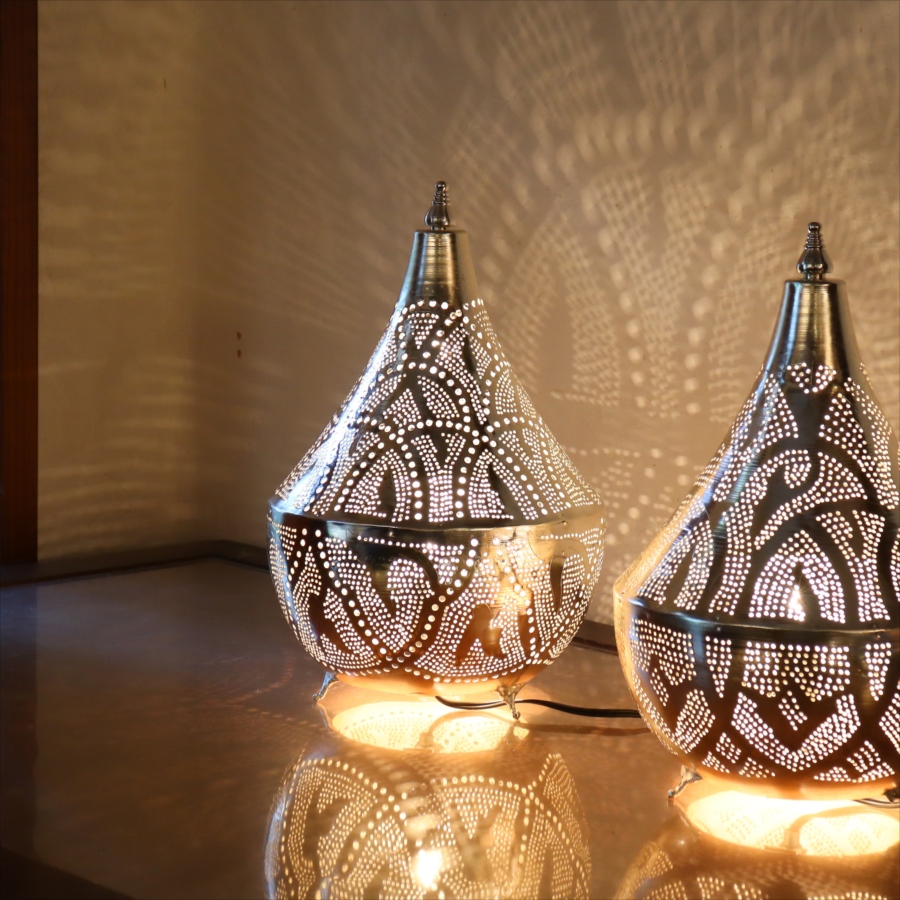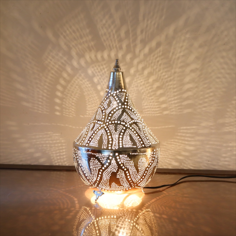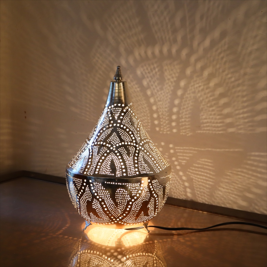 Key:モロッコランプ BOHO モロッコランタン メタルシェード ボヘミアンスタイル シルバー メタルランプ インダストリアル テーブルランプ テーブルライト 間接照明 室内照明 店舗照明 Morroco Lamp Egyptian lamp Egypt craftmanship