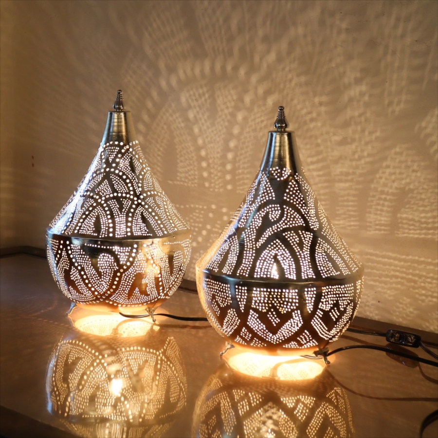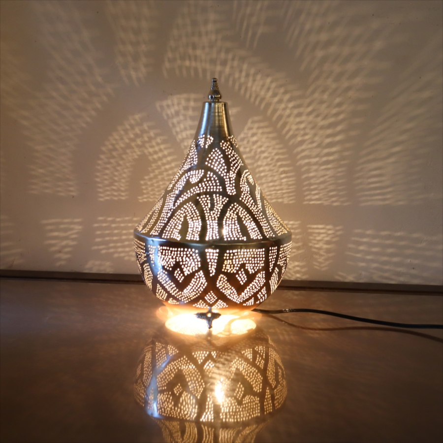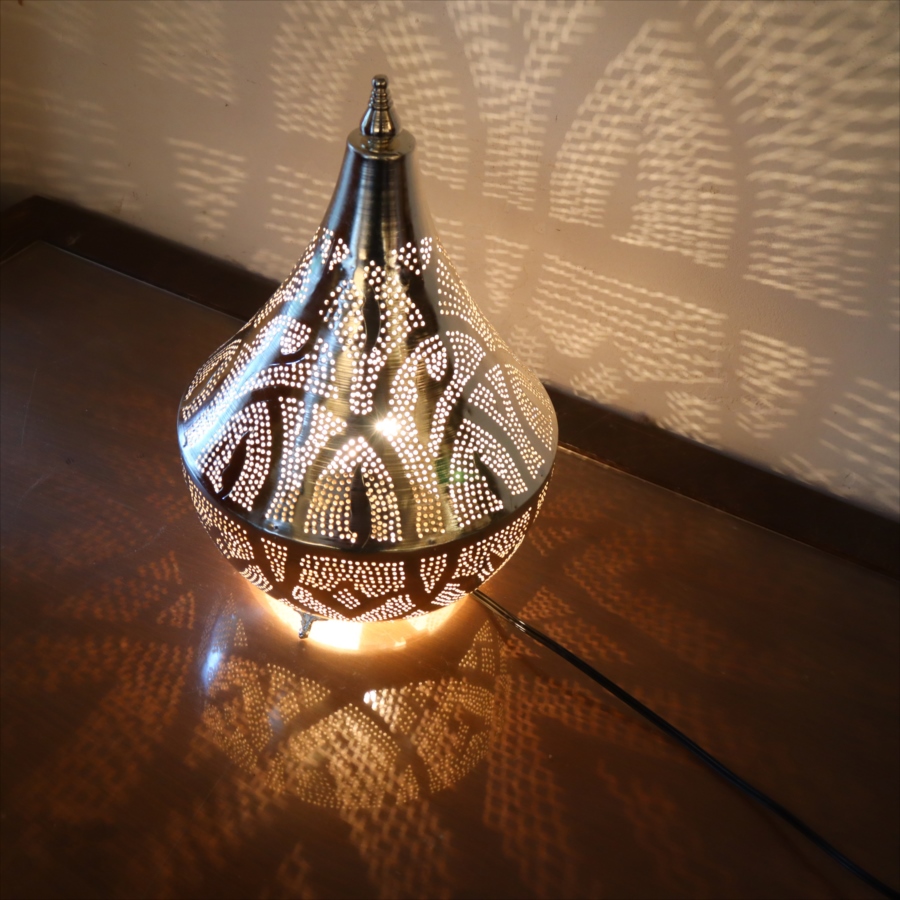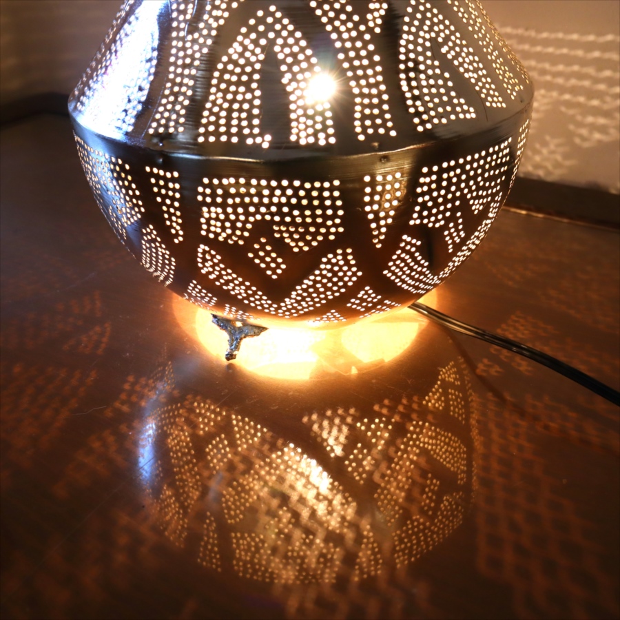 Key:モロッコランプ BOHO モロッコランタン メタルシェード ボヘミアンスタイル シルバー メタルランプ インダストリアル テーブルランプ テーブルライト 間接照明 室内照明 店舗照明 Morroco Lamp Egyptian lamp Egypt craftmanship