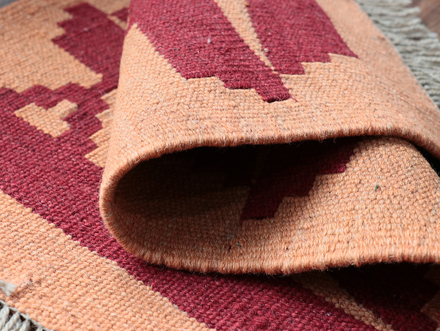 キリムはすべて手織りで作られています。織る女性の手の加減によって、サイズの多少の誤差やゆがみ等がありますことはご了承願います。