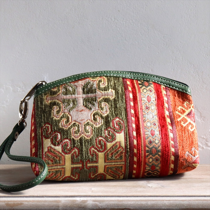 トルコの伝統柄を織り込んだ、エスニックなデザイン&カラーのポーチです。